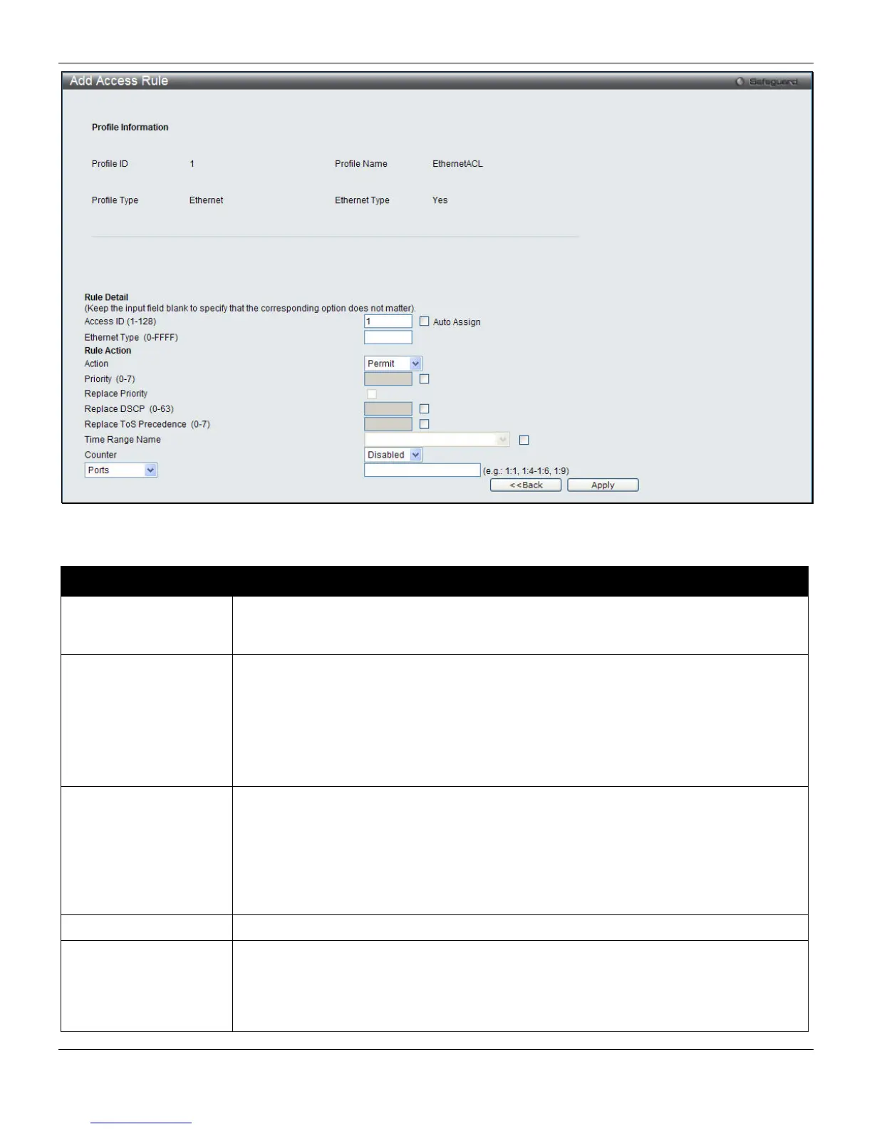 Figure 7-6 Add Access Rule window (Ethernet ACL)