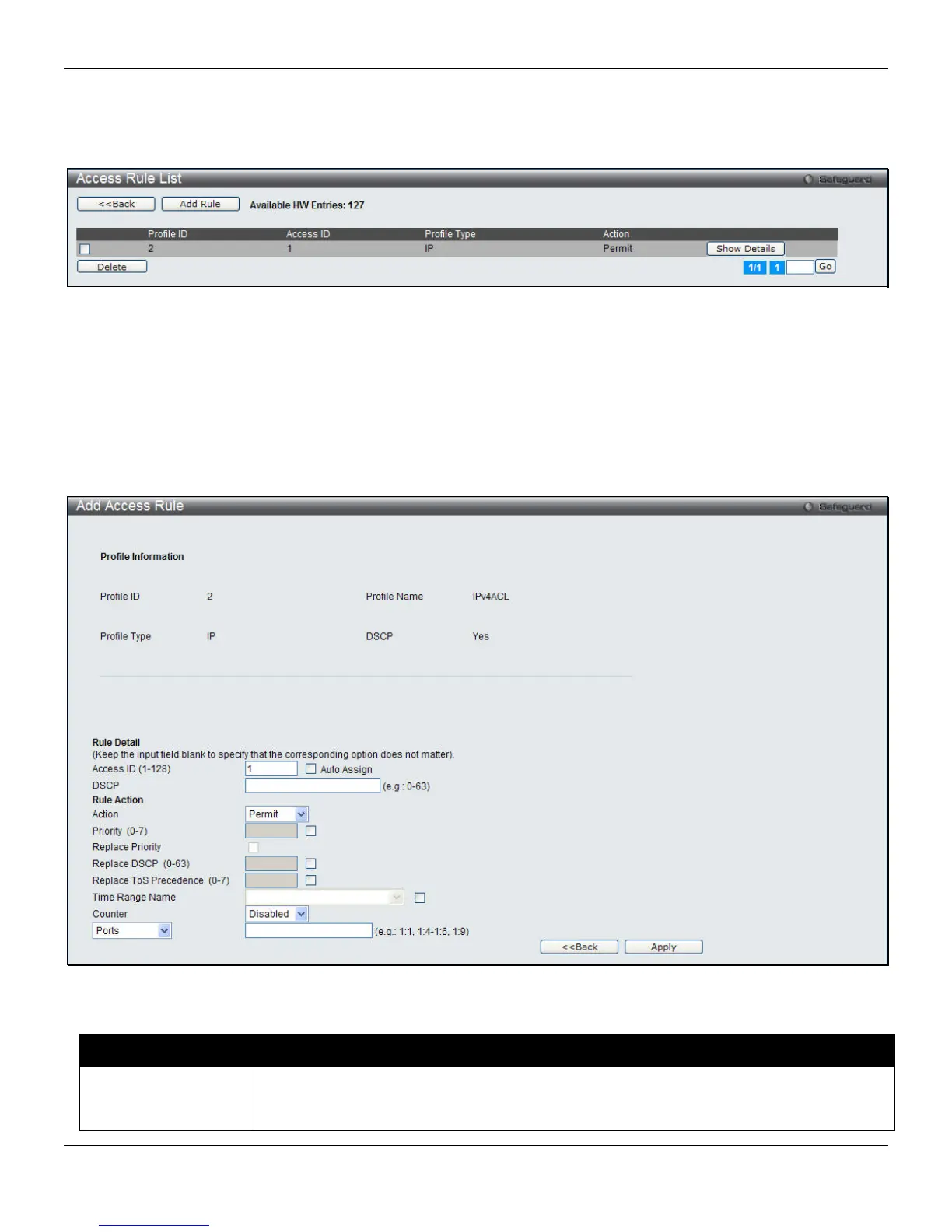 Figure 7-10 Access Rule List window (IPv4 ACL)
