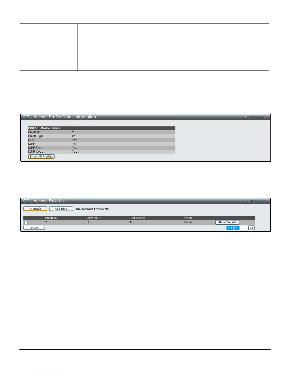 Click the Show All Profiles button to navigate back to the CPU ACL Profile List Page.