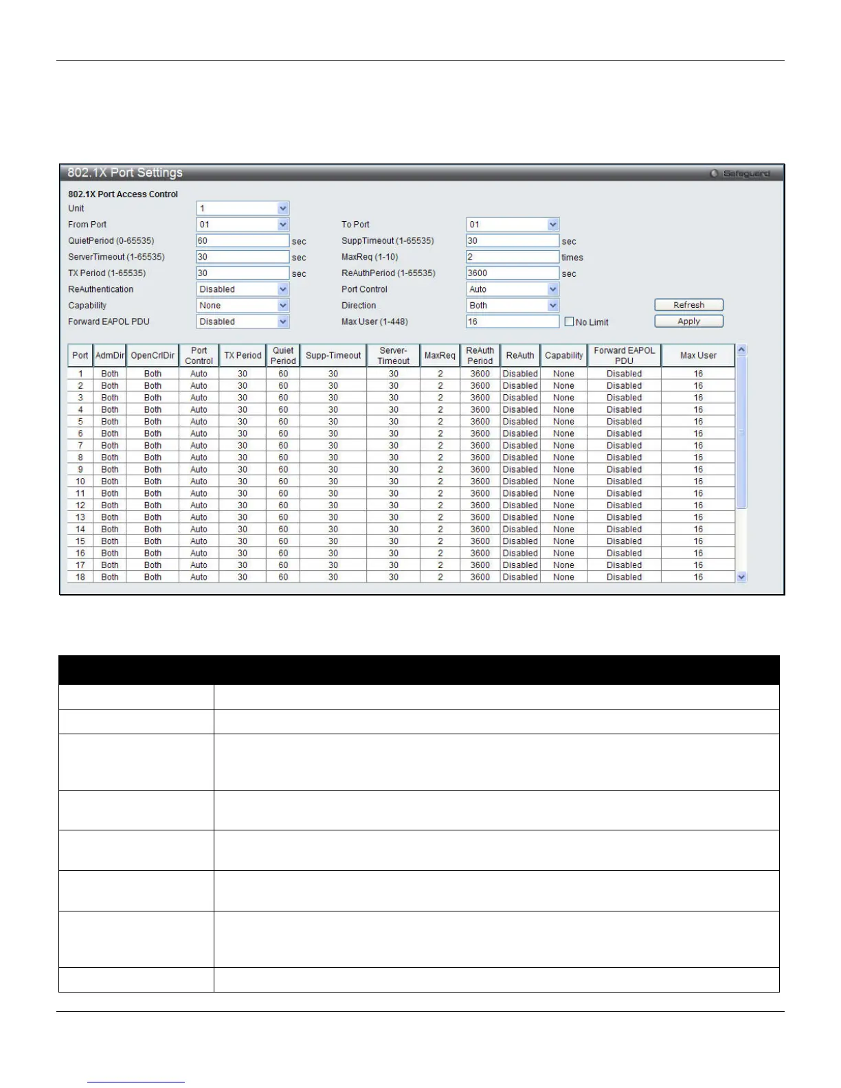 To view this window, click Security > 802.1X > 802.1X Port Settings, as shown below: