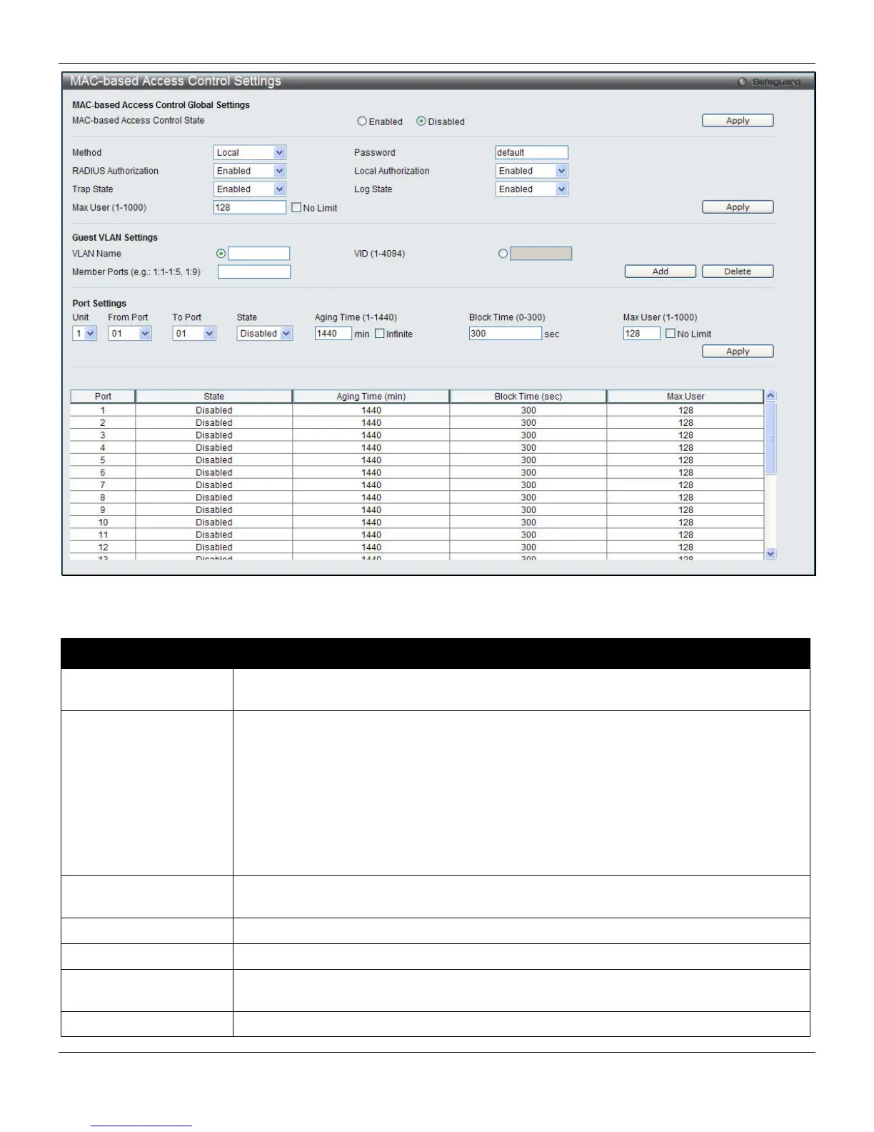 authenticator for MAC-based access control. This MAC address list can be configured in