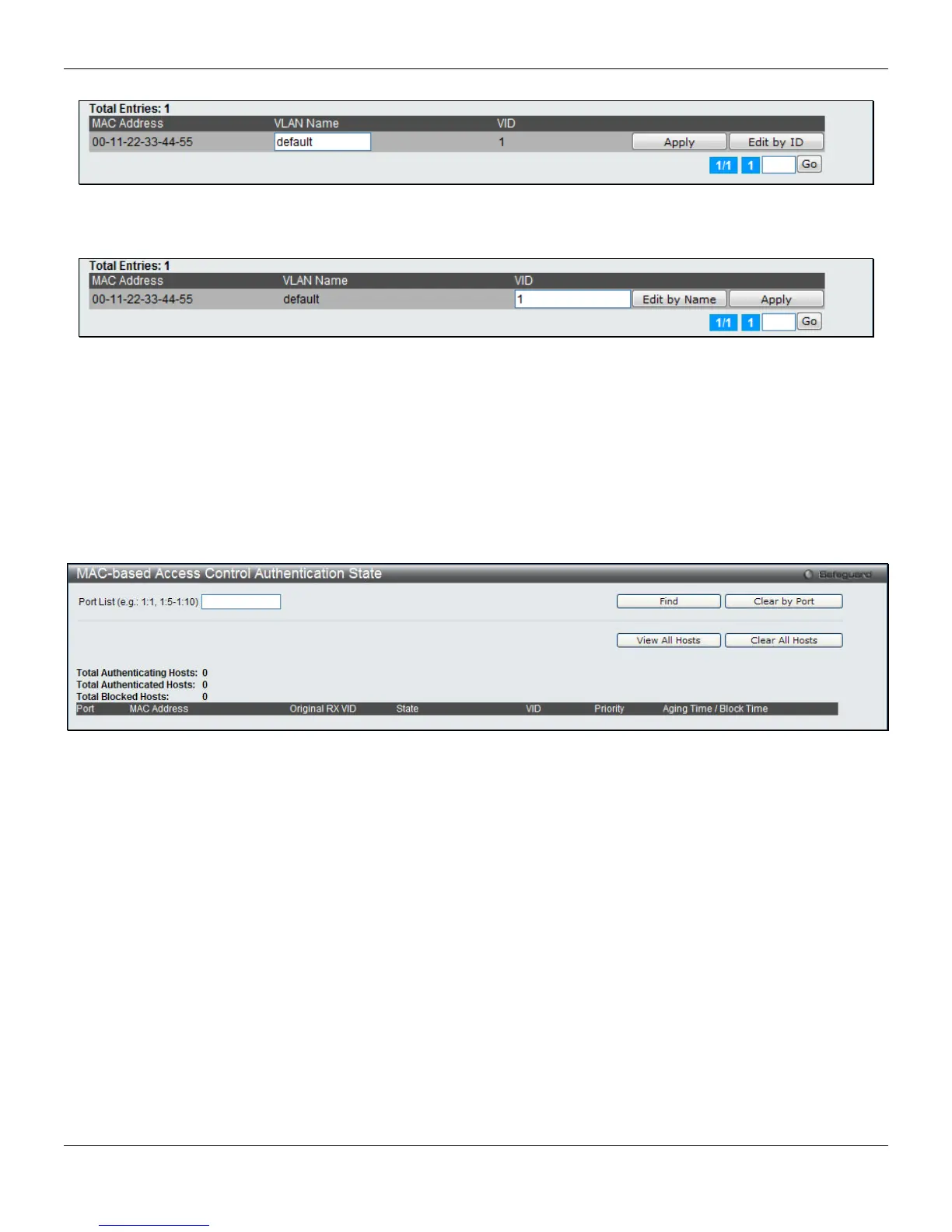 To change the selected MAC address’ VID value, the user can click the Edit by ID button.