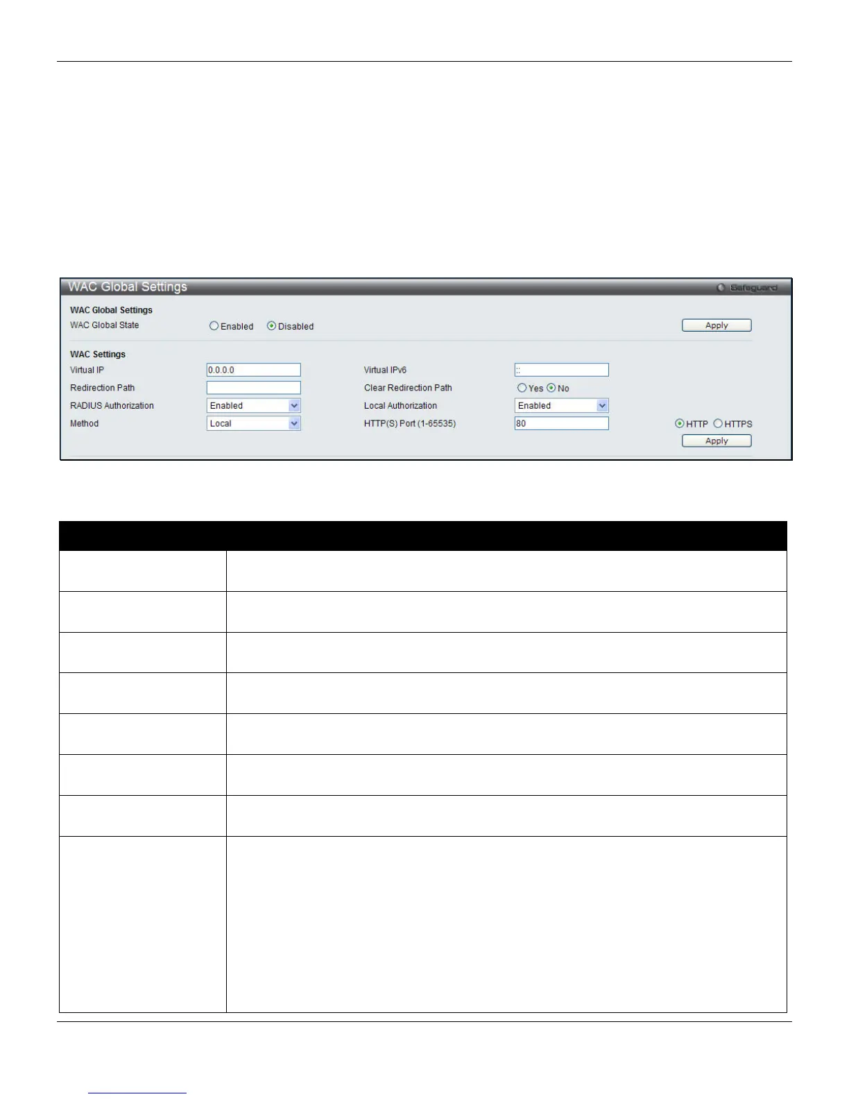 To view this window, click Security > Web-based Access Control (WAC) > WAC Global Settings, as shown below: