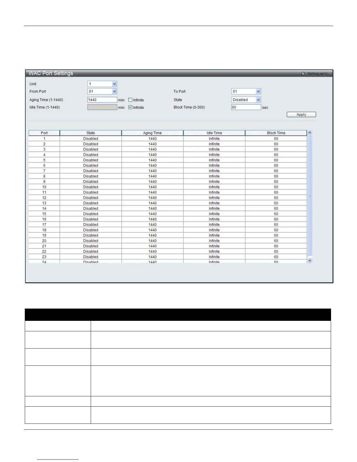 To view this window, click Security > Web-based Access Control (WAC) > WAC Port Settings, as shown below:
