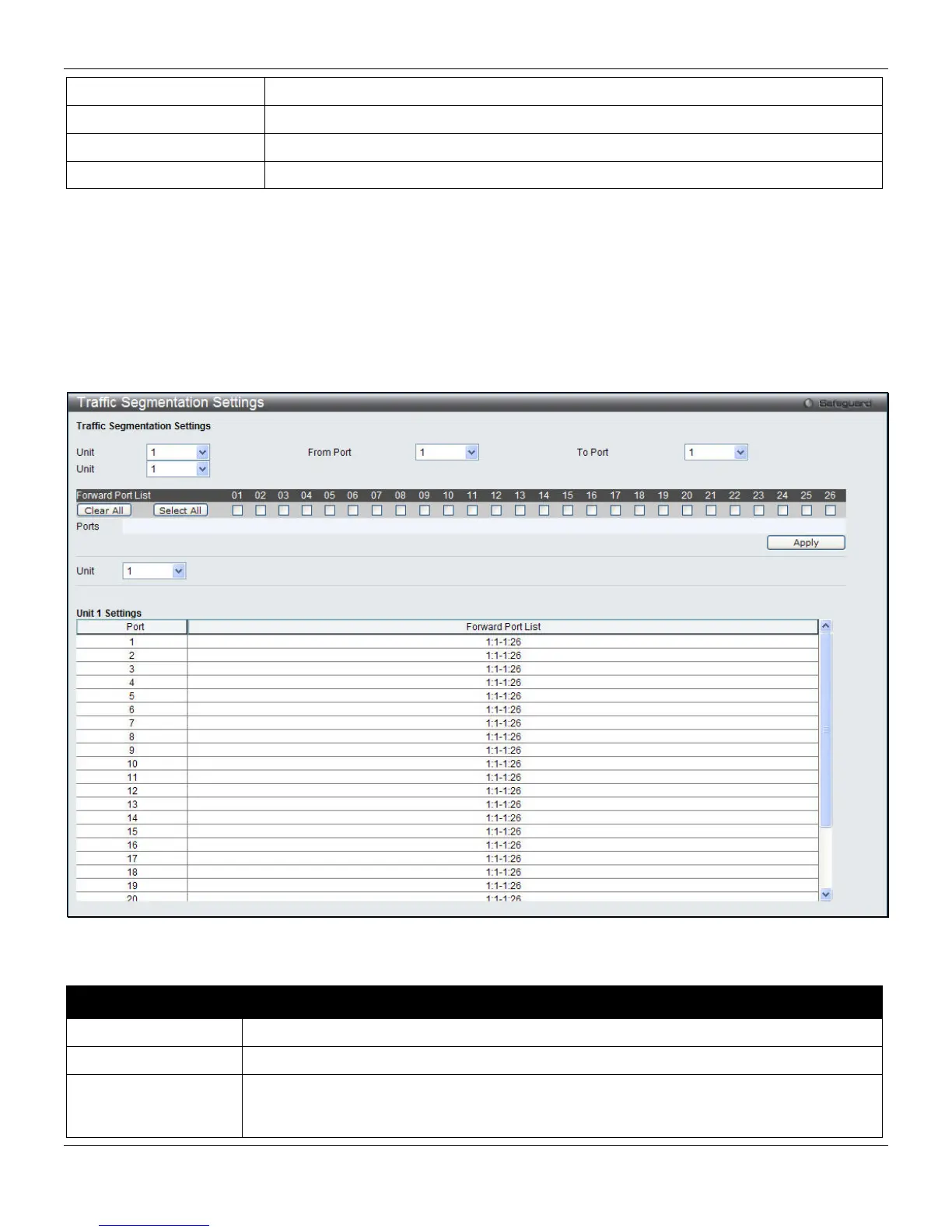 To view this window, click Security > Traffic Segmentation Settings, as shown below: