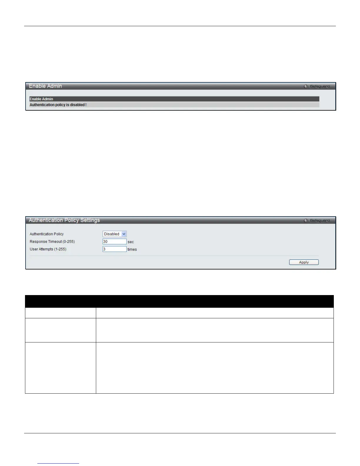 Use the pull-down menu to enable or disable the Authentication Policy on the Switch.