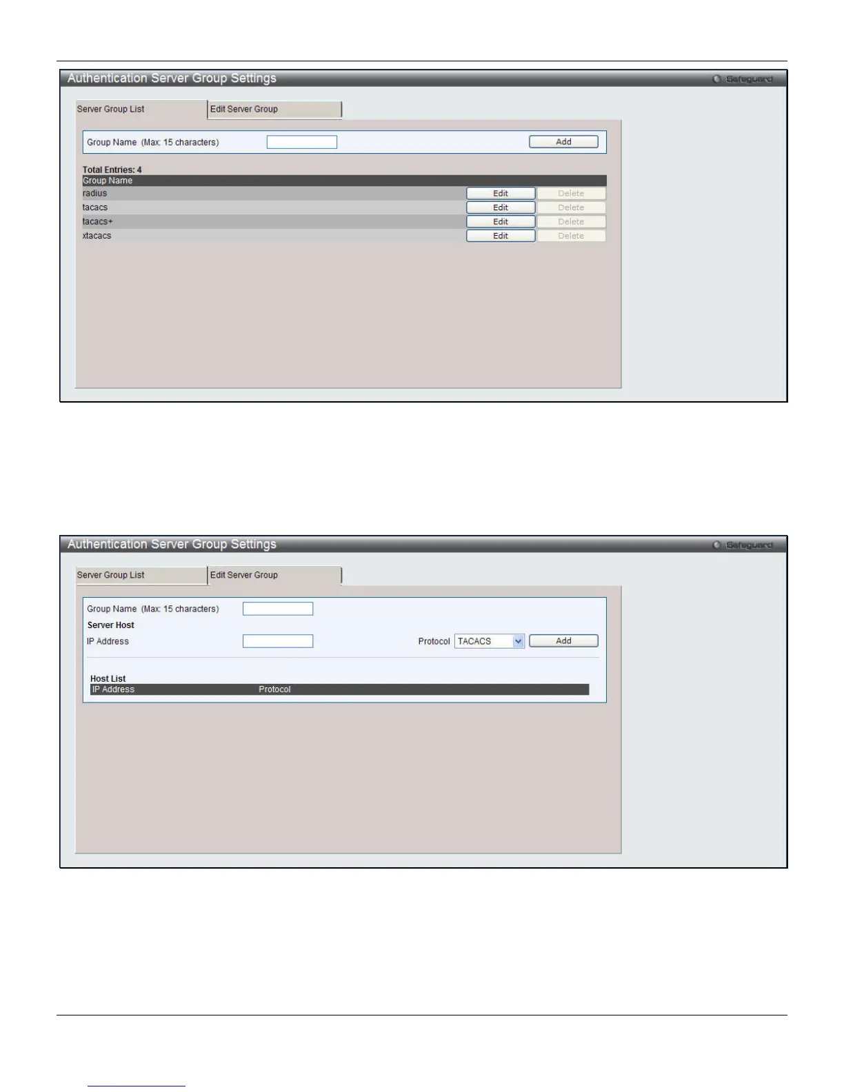 To add an Authentication Server Host to the list, enter its name in the Group Name field, IP address in the IP Address