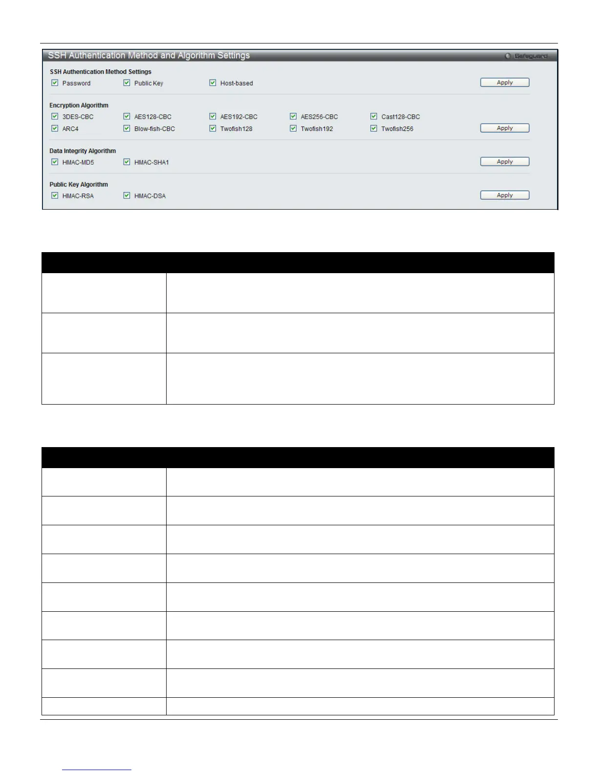 Figure 8-71 SSH Authentication Method and Algorithm Settings window