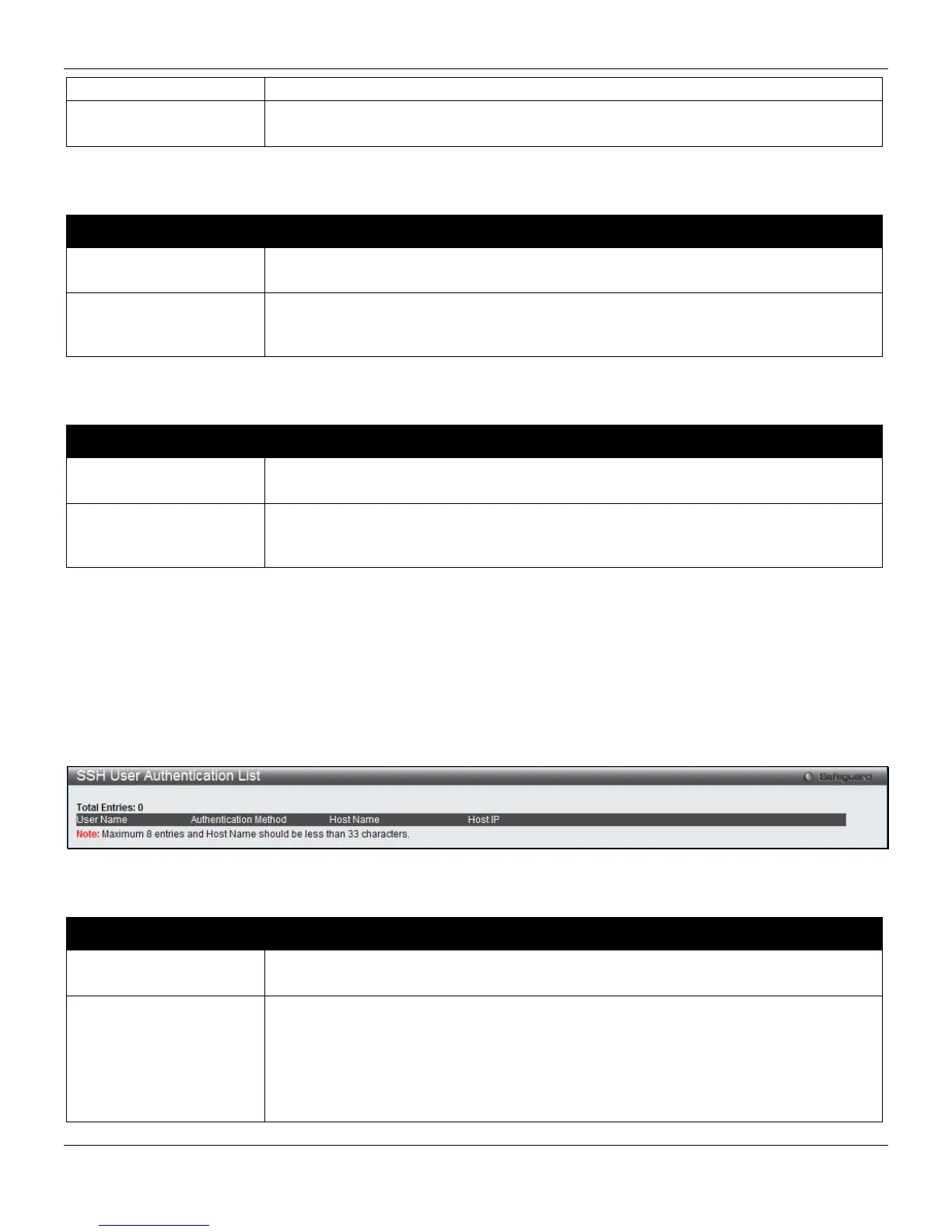 To view this window, click Security > SSH > SSH User Authentication List, as shown below: