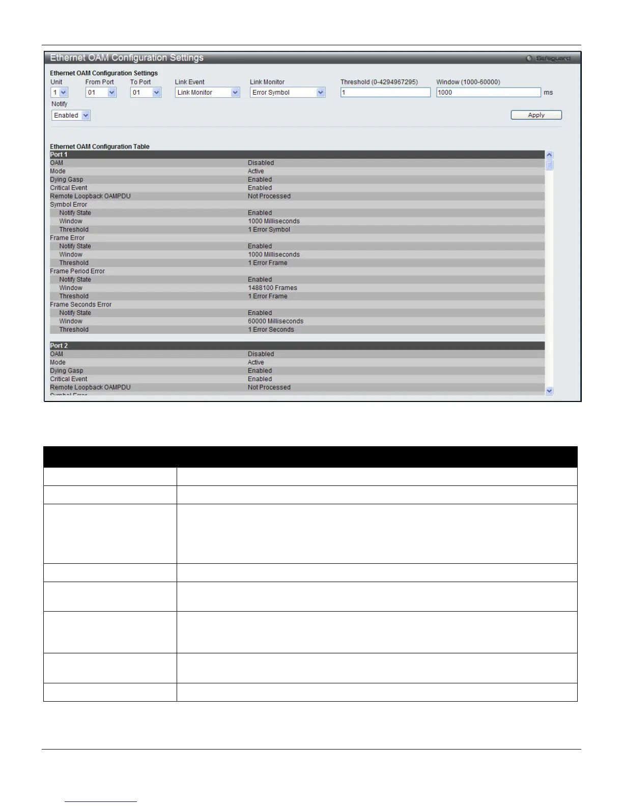 Figure 10-15 Ethernet OAM Configuration Settings window