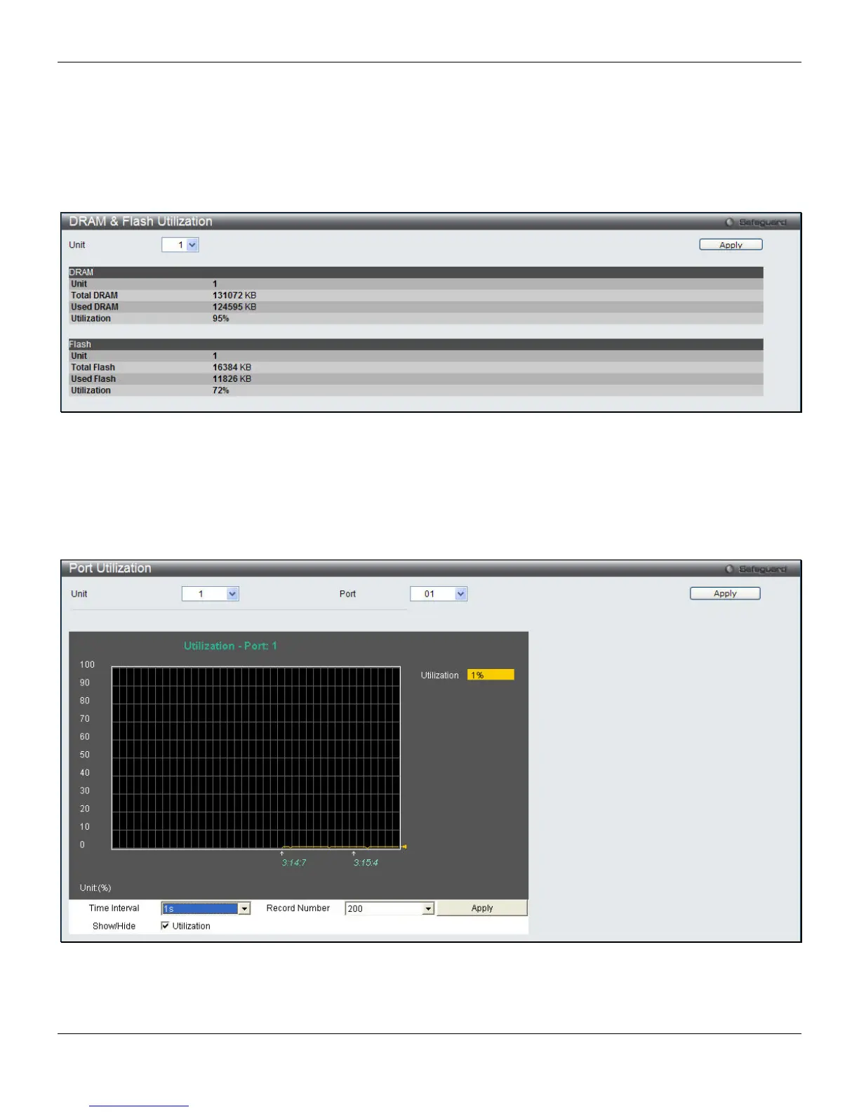 To view this window, click Monitoring > Utilization > DRAM & Flash Utilization, as shown below:
