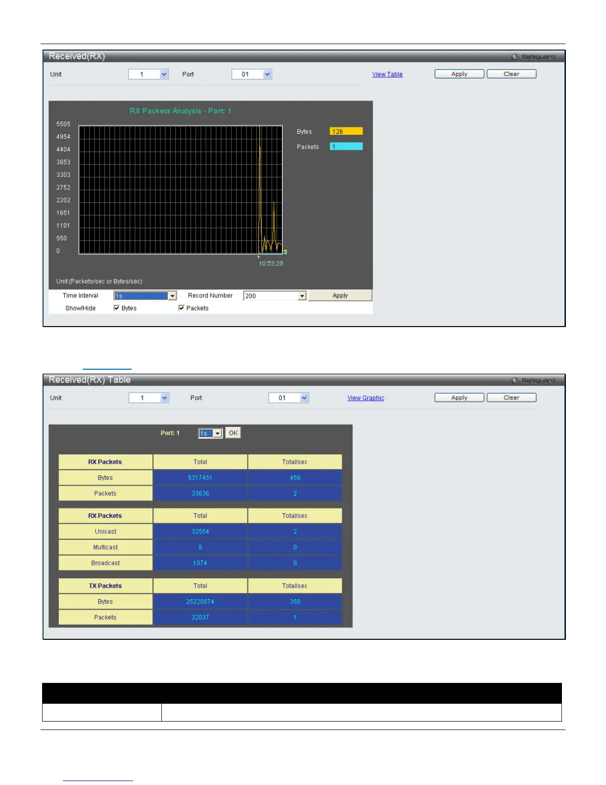 Figure 11-5 Received (RX) Table window (for Bytes and Packets)