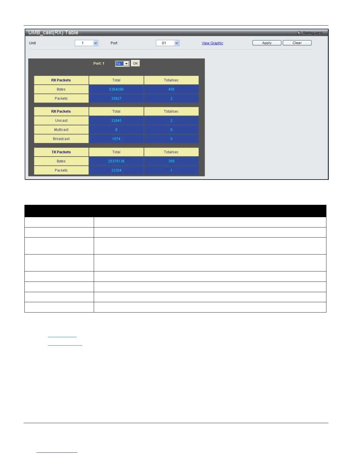 Figure 11-7 RX UMB_cast (RX) Table window (table for Unicast, Multicast, and Broadcast Packets)