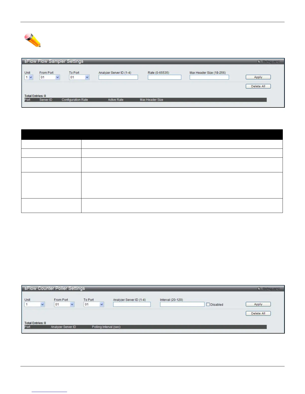 This window is used to configure the sFlow counter poller parameters. If the user wants the change the analyzer server