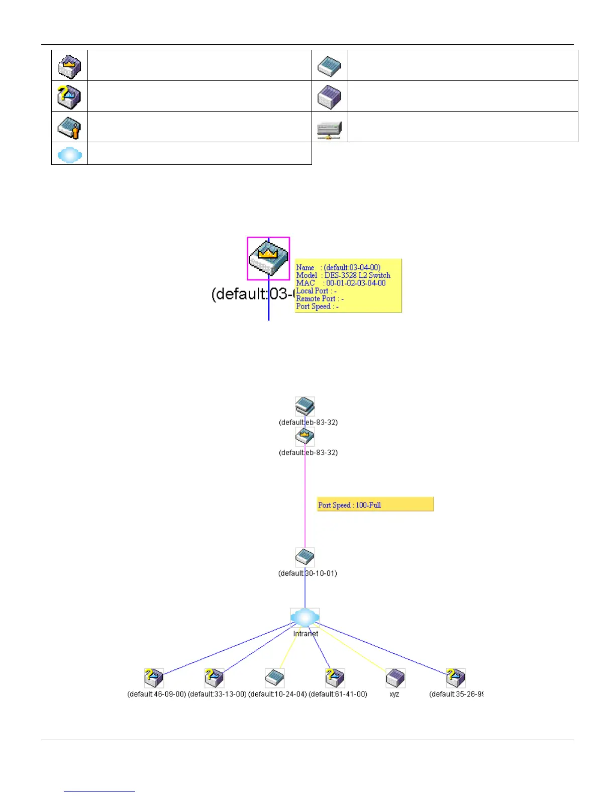 Setting the mouse cursor over a line between two devices will display the connection speed between the two devices,