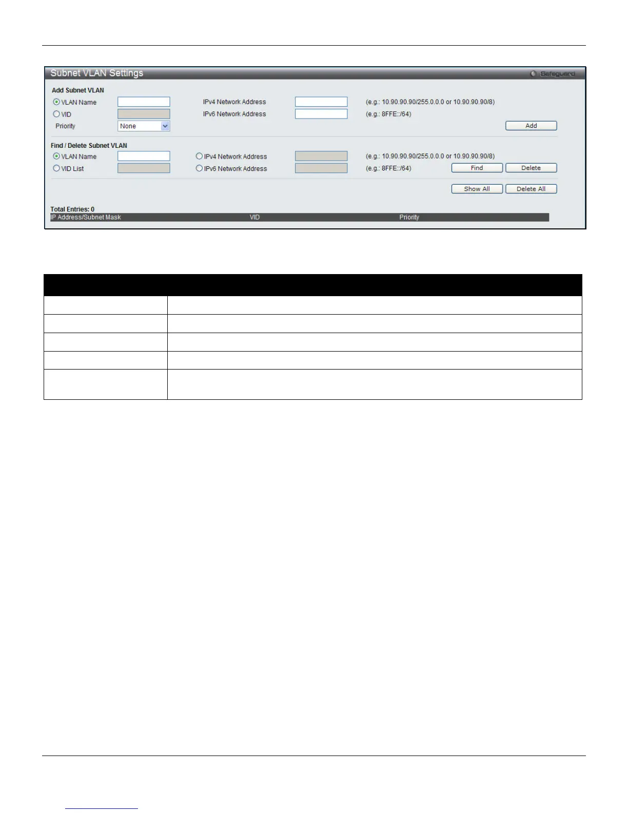 To view this window, click L2 Features > Subnet VLAN > Subnet VLAN Settings, as shown below: