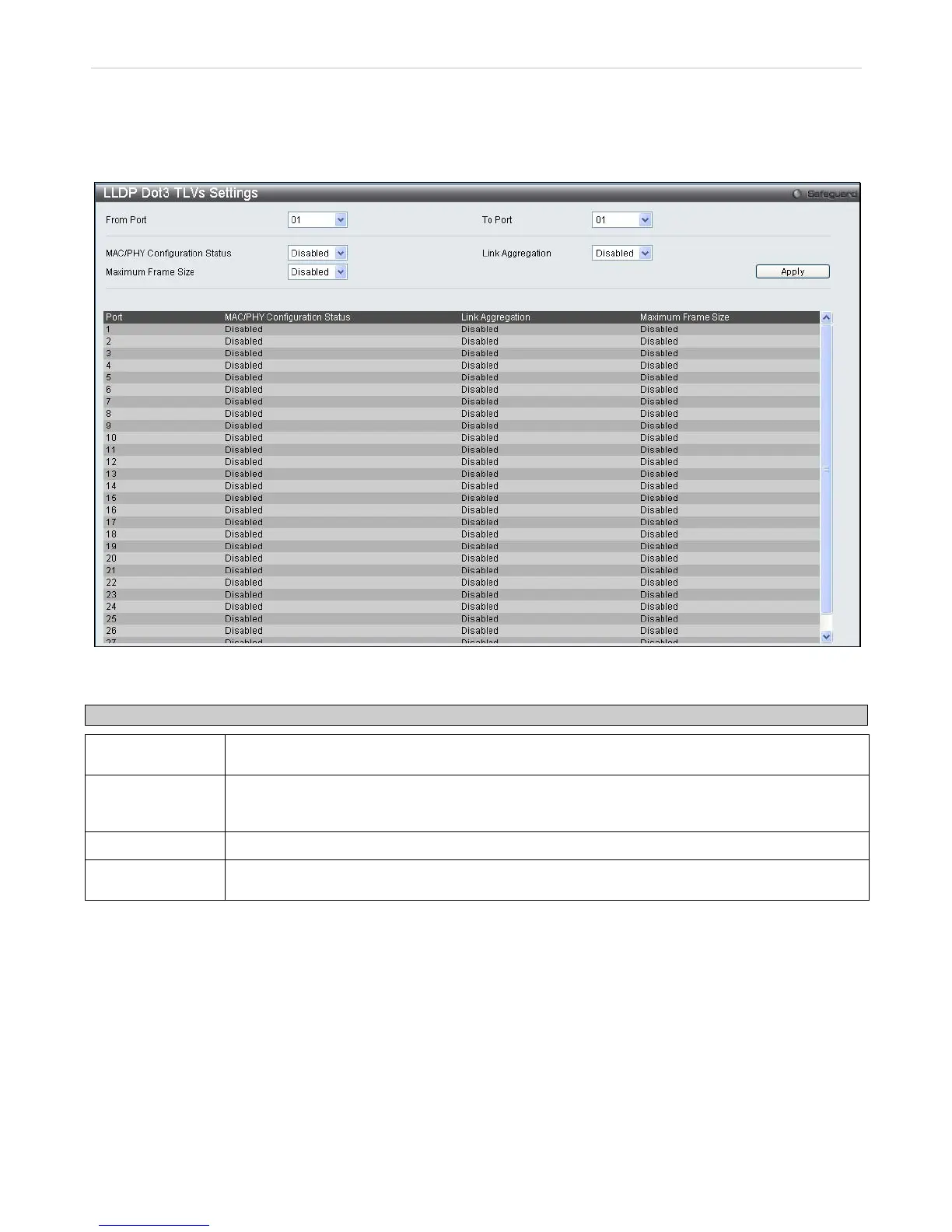 To view this window, Click L2 Features > LLDP > LLDP Dot3 TLVs Settings