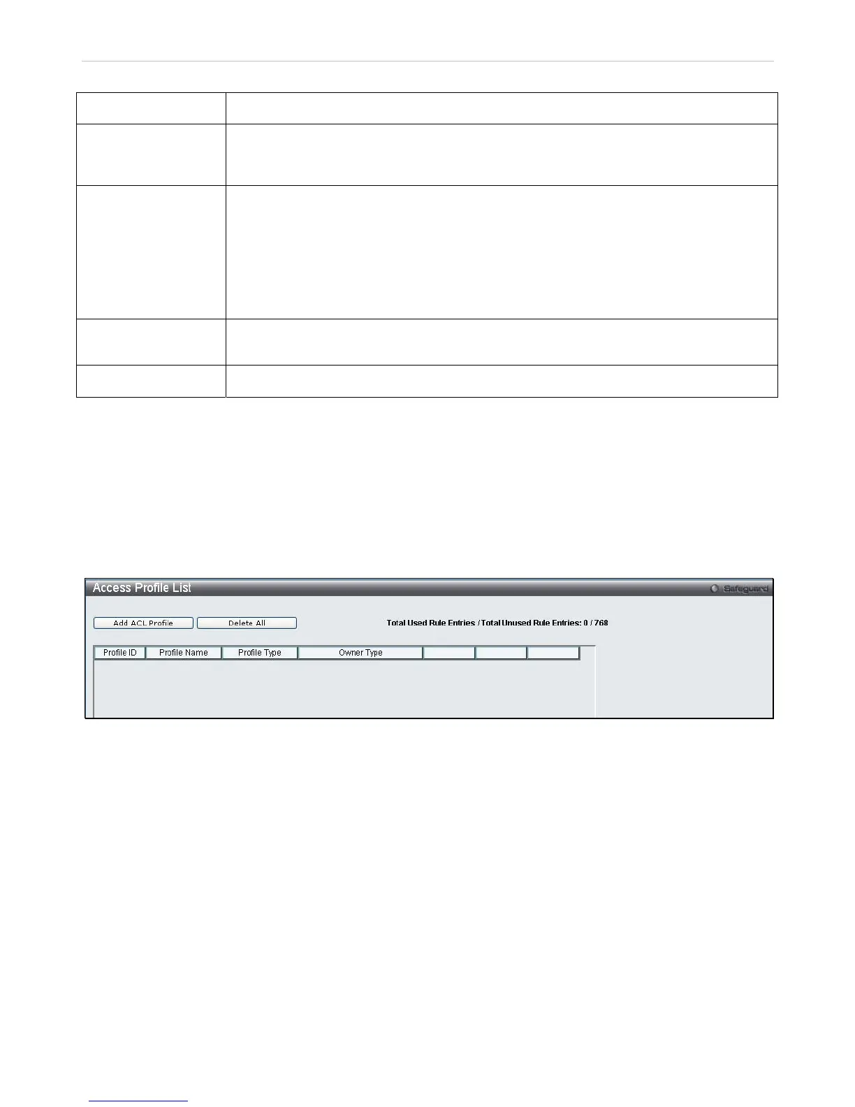 To display the currently configured Access Profiles on the Switch, open the ACL folder and click the Access Profile