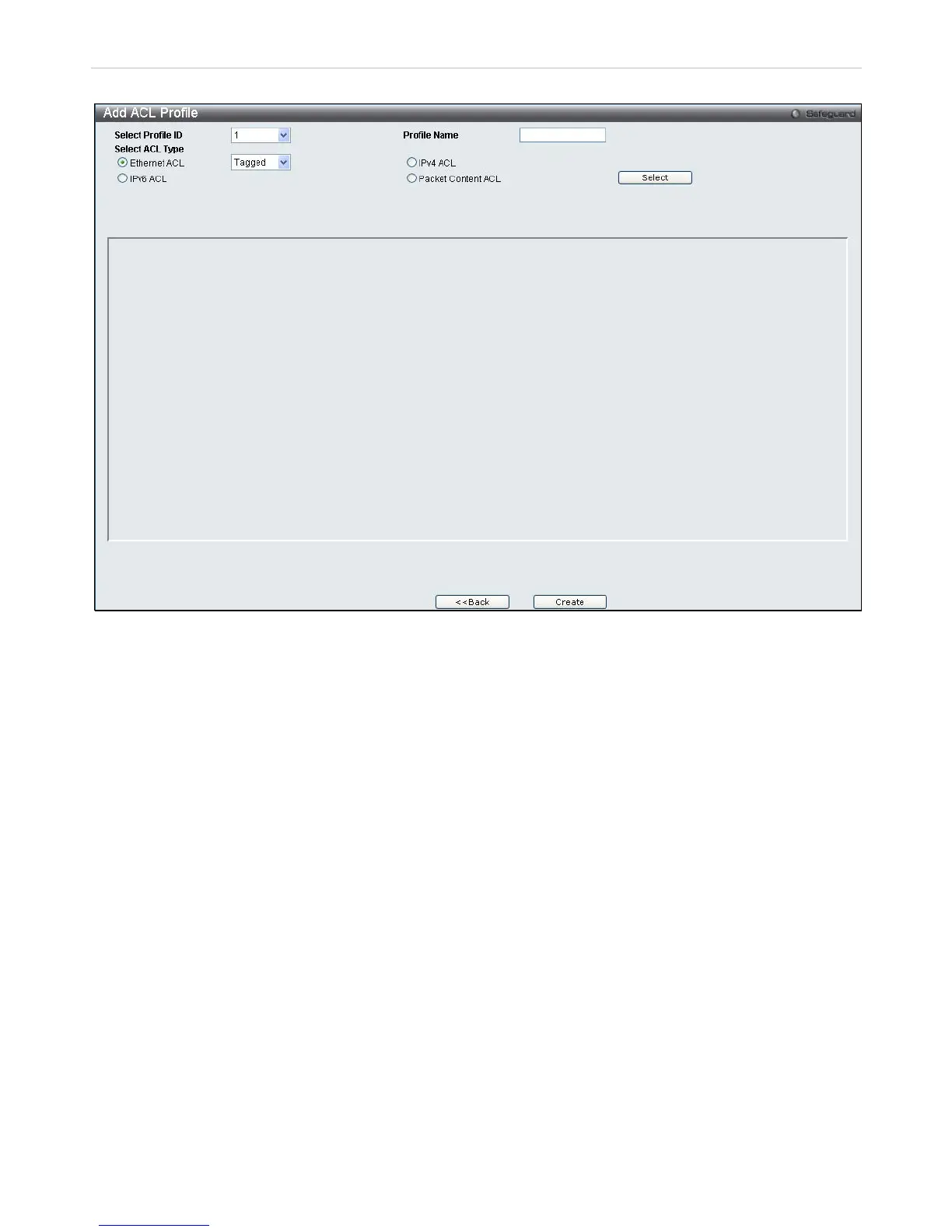 If creating an Ethernet ACL enter the Profile ID and Profile Name and click Select the following window will appear.