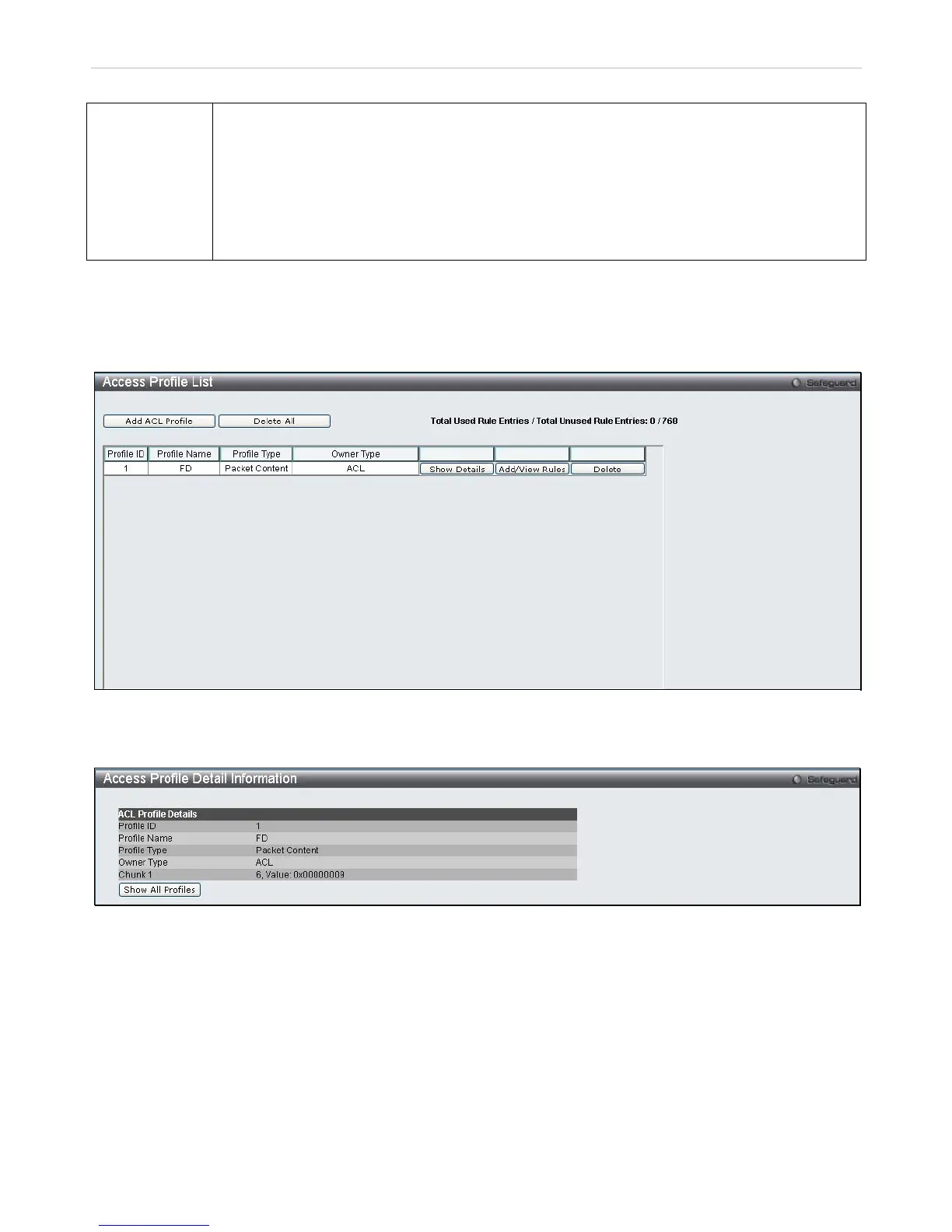 Access Profile click Add ACL Profile. To delete a profile click the corresponding Delete button, to view the specific