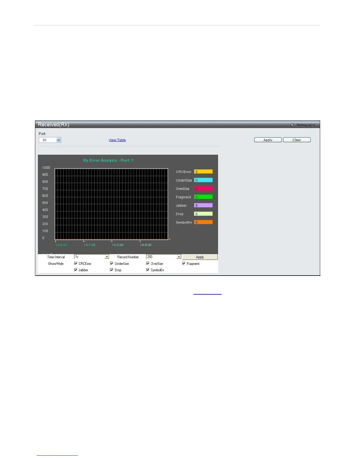 To view the following graph of error packets received on the Switch Click Monitoring > Errors > Received (RX).