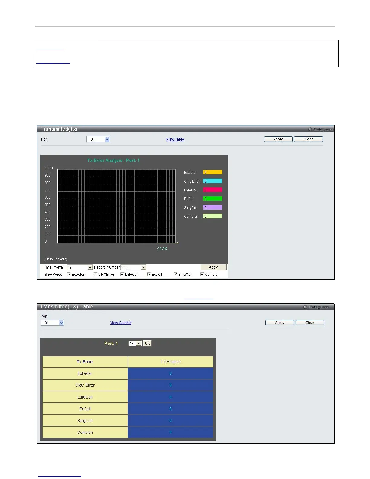 To view the Transmitted (TX) Table window, click the link View Table