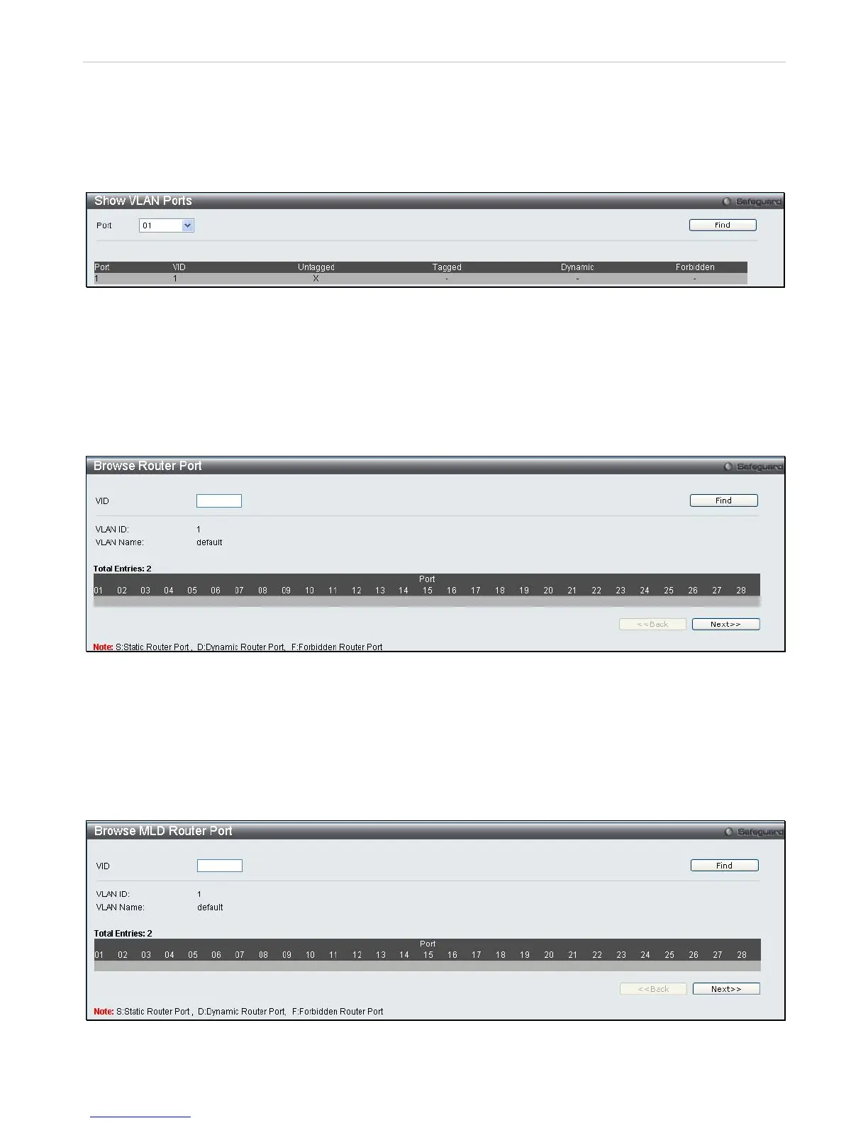 To view the Browse MLD Router Port window, click Monitoring > Browse MLD Router Port.