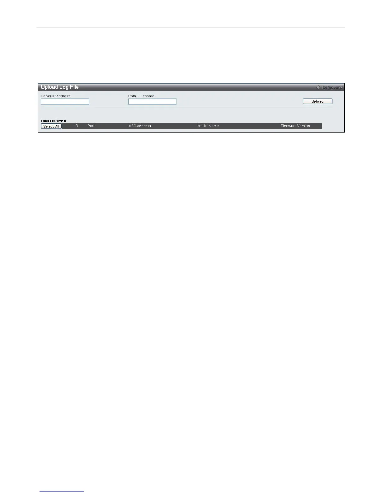 The following window is used to upload log files from SIM member switches to a specified PC. To upload a log file,