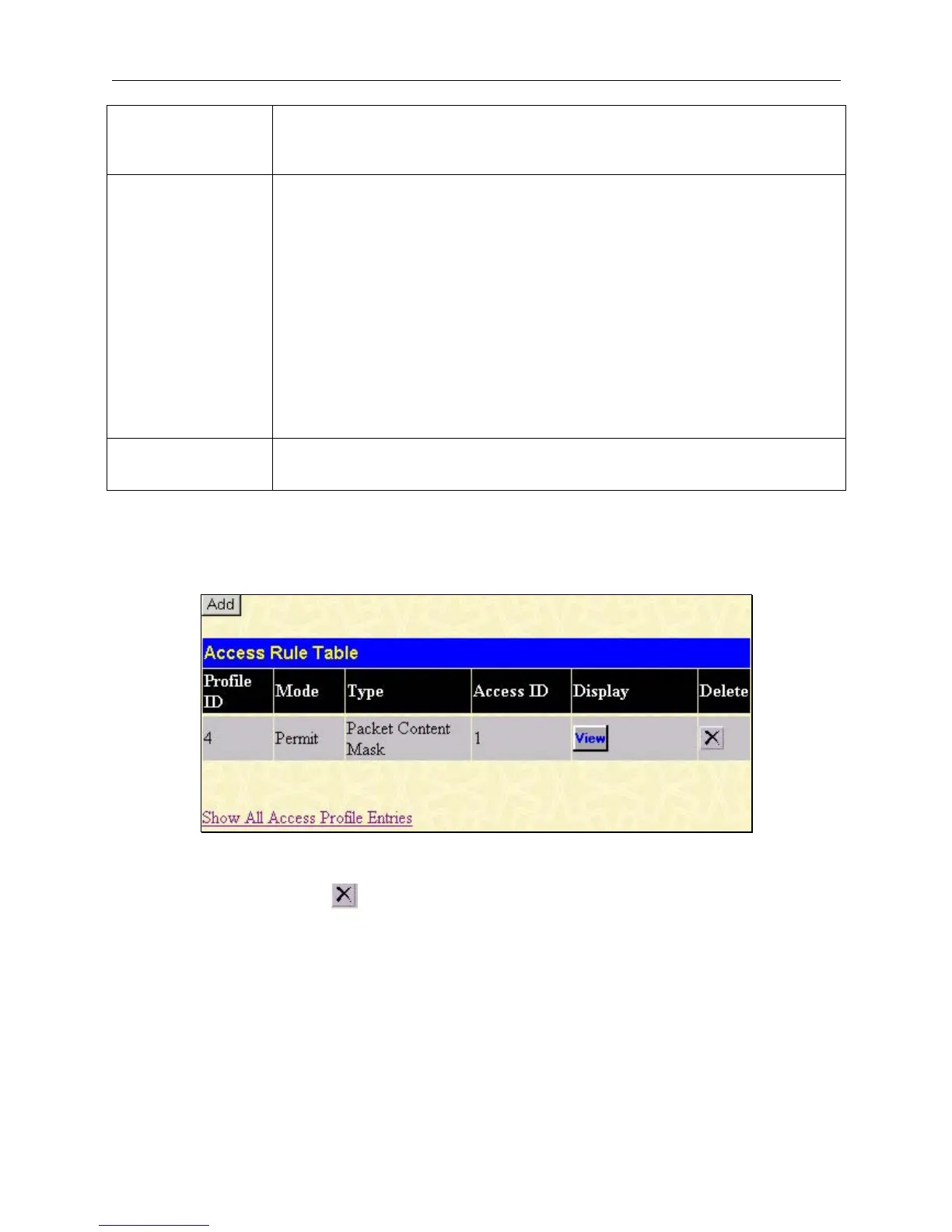 The user may set the Access Profile Table on a per-port basis by entering an entry