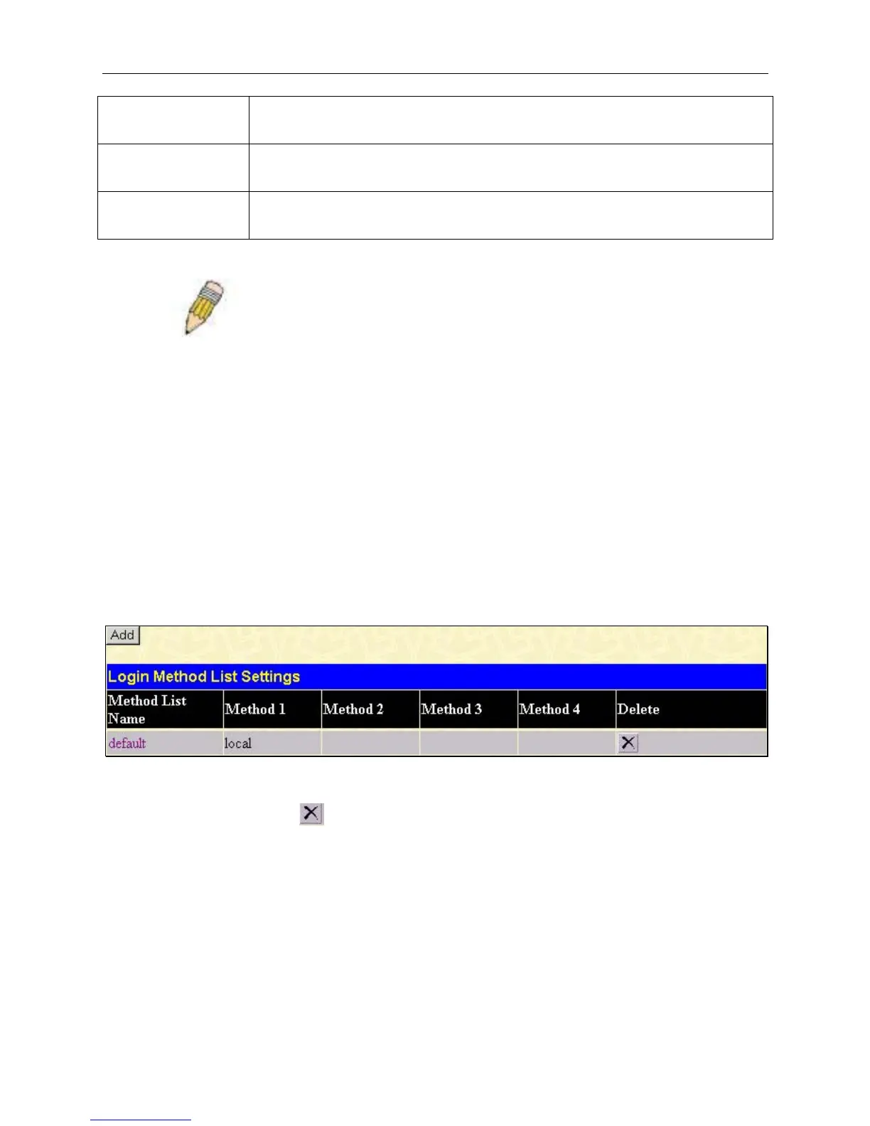 modify a Login Method List, click on its hyperlinked Method List Name. To configure a new Method List, click the Add
