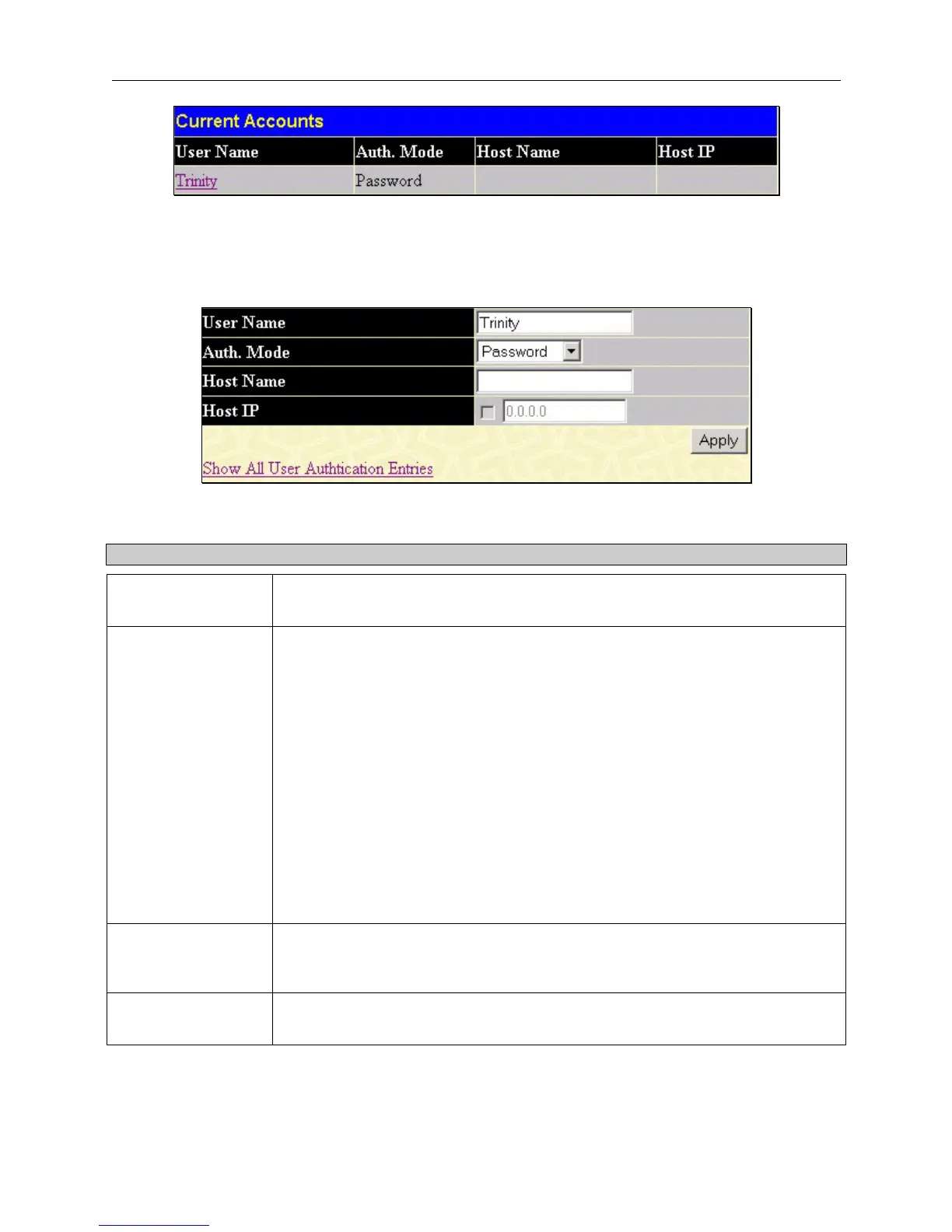 Name must be a previously configured user account on the Switch.