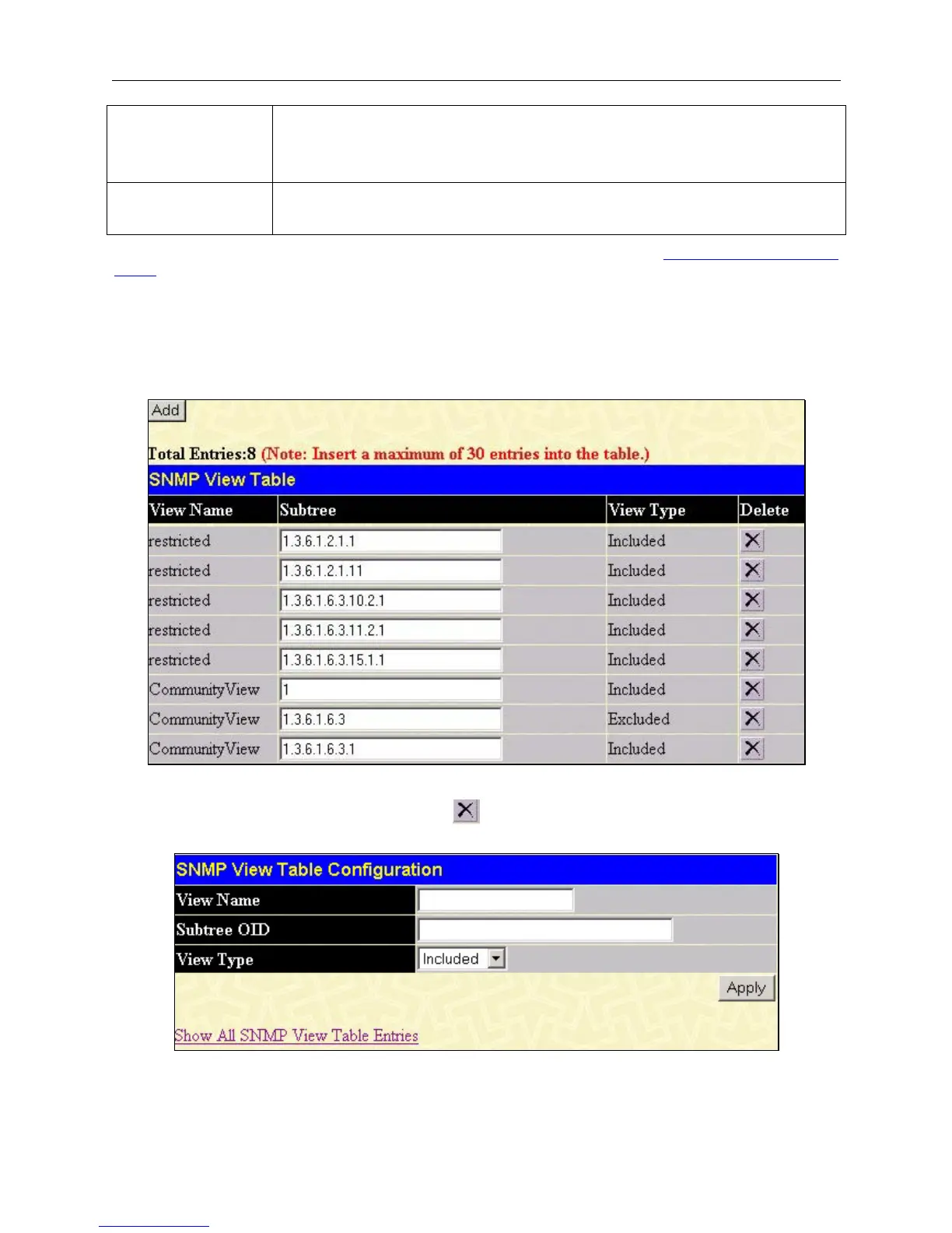 and click the SNMP View Table entry. The following screen should appear: