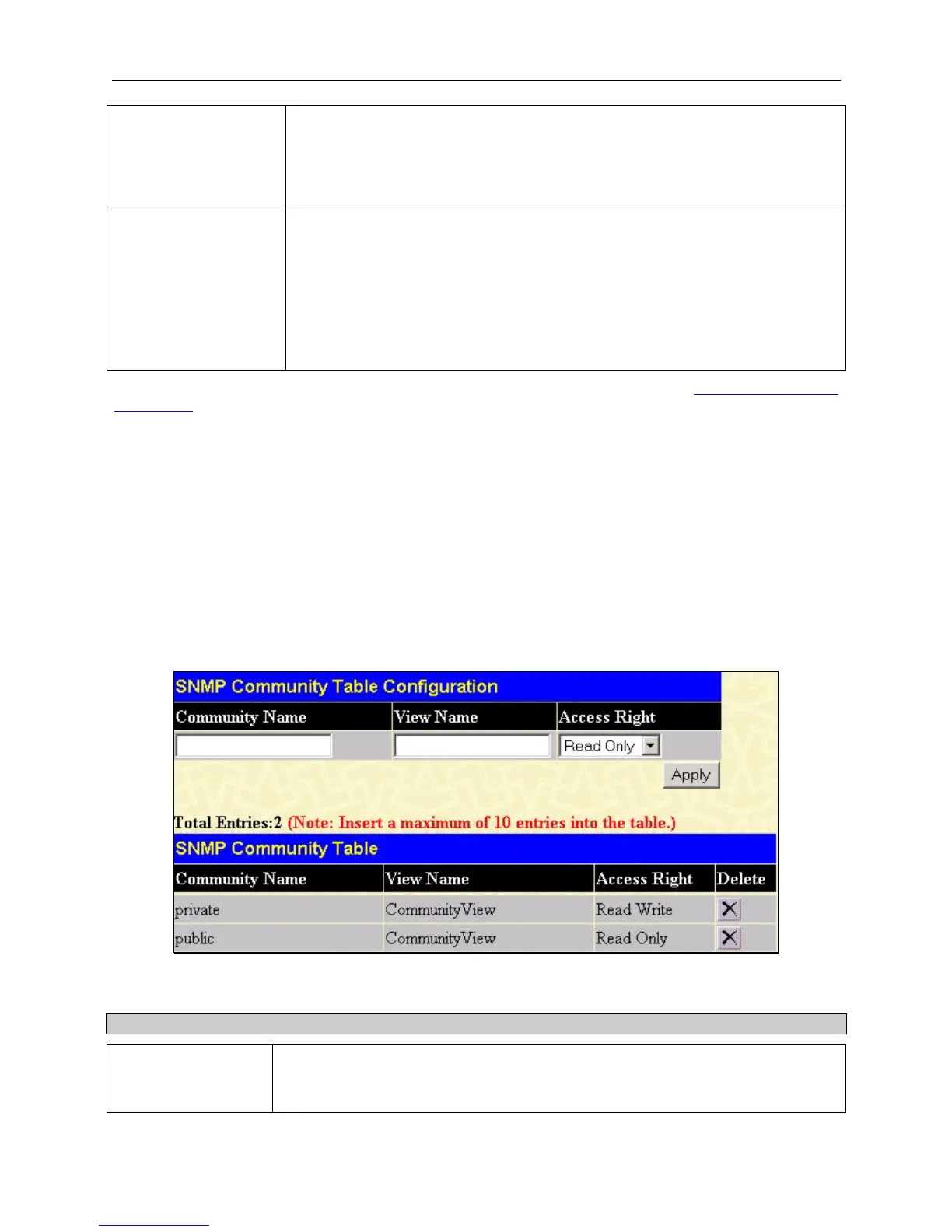 Figure 7- 34. SNMP Community Table Configuration and Table