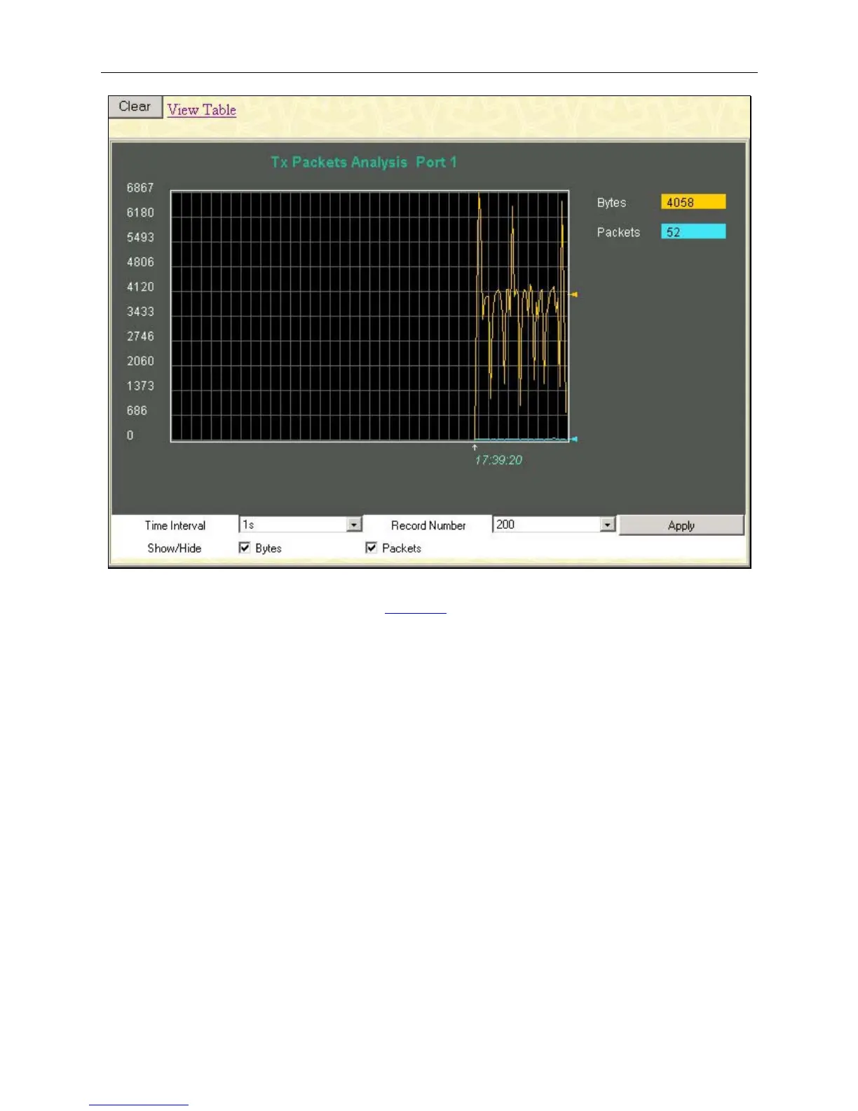 Figure 8- 7. Tx Packets Analysis window (line graph for Bytes and Packets)