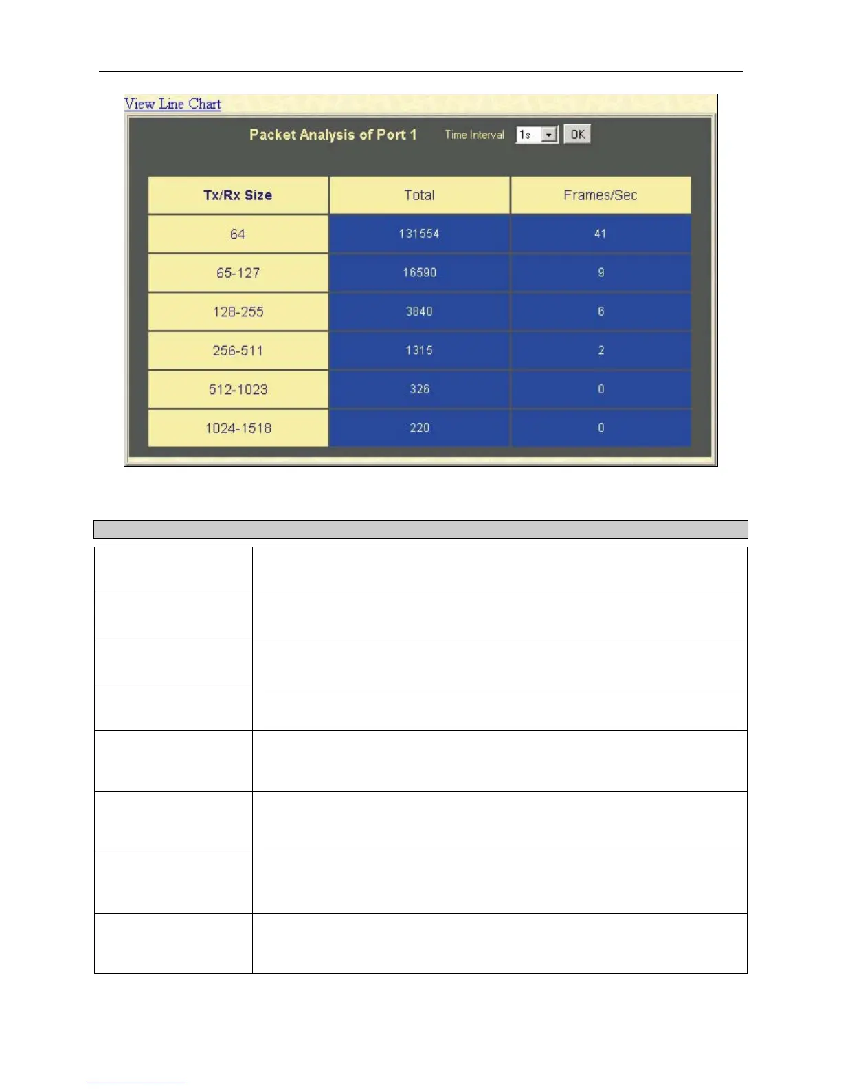 Figure 8- 14. Rx Size Analysis window (table)