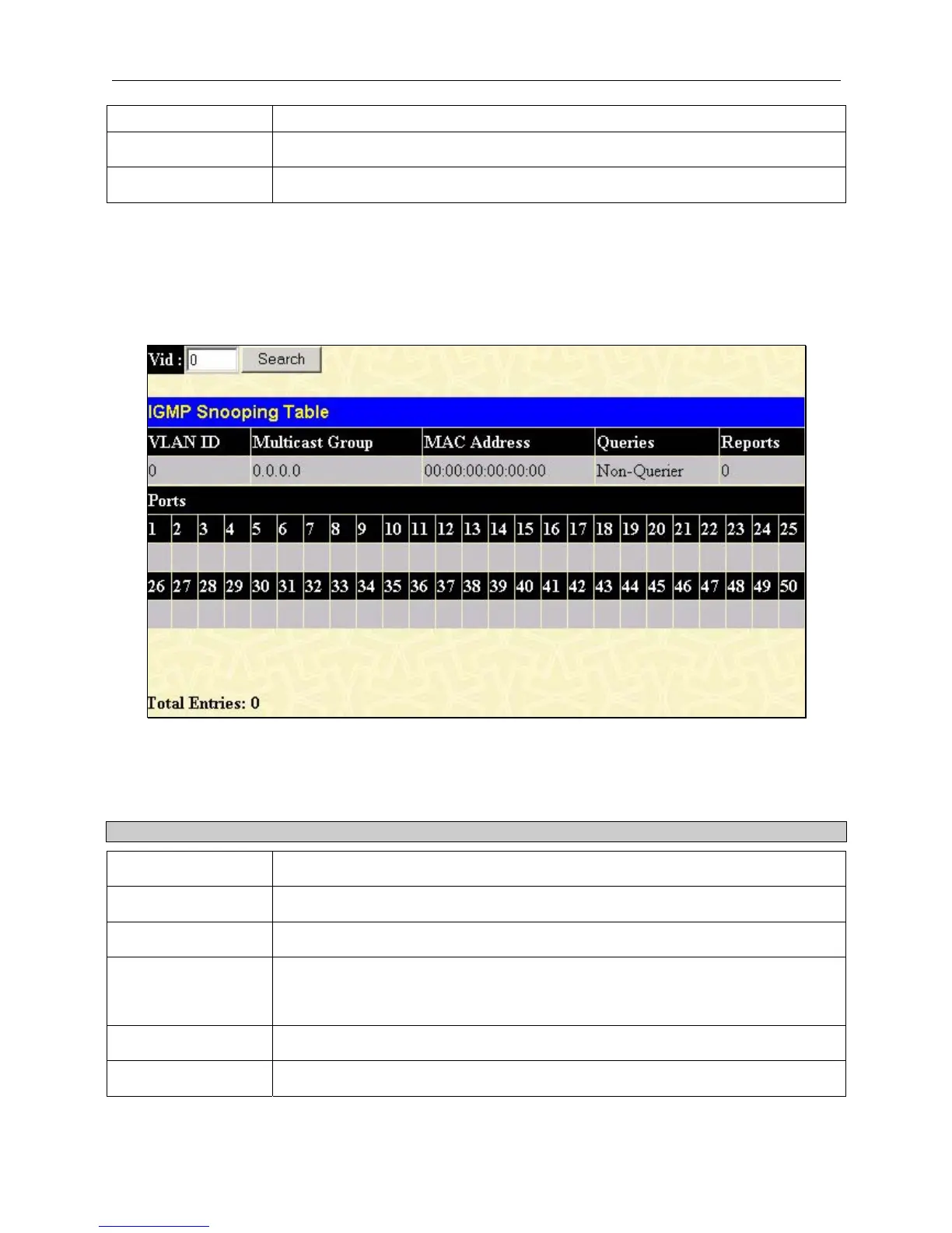The user may search the IGMP Snooping Table by VLAN ID(VID) by entering the VID in the top left hand corner and