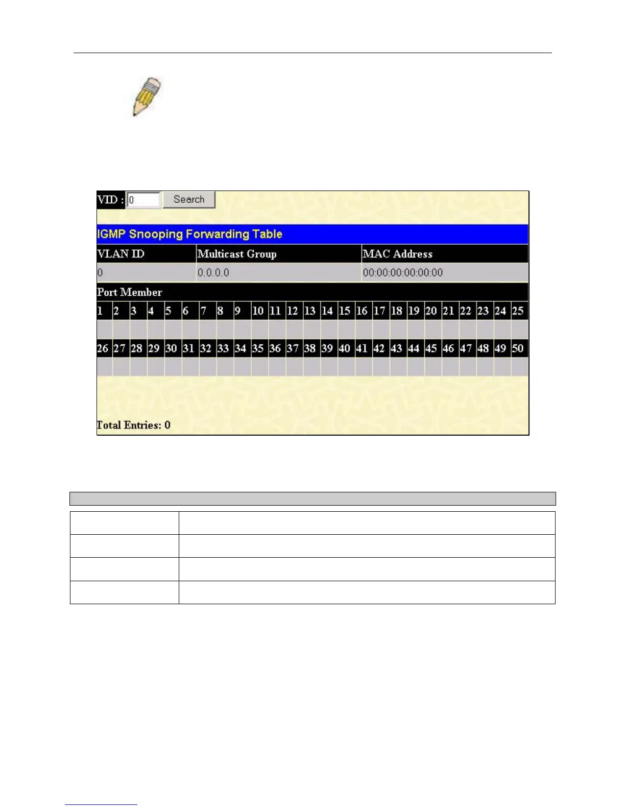 This window will display the current IGMP snooping forwarding table entries currently configured on the Switch. To view
