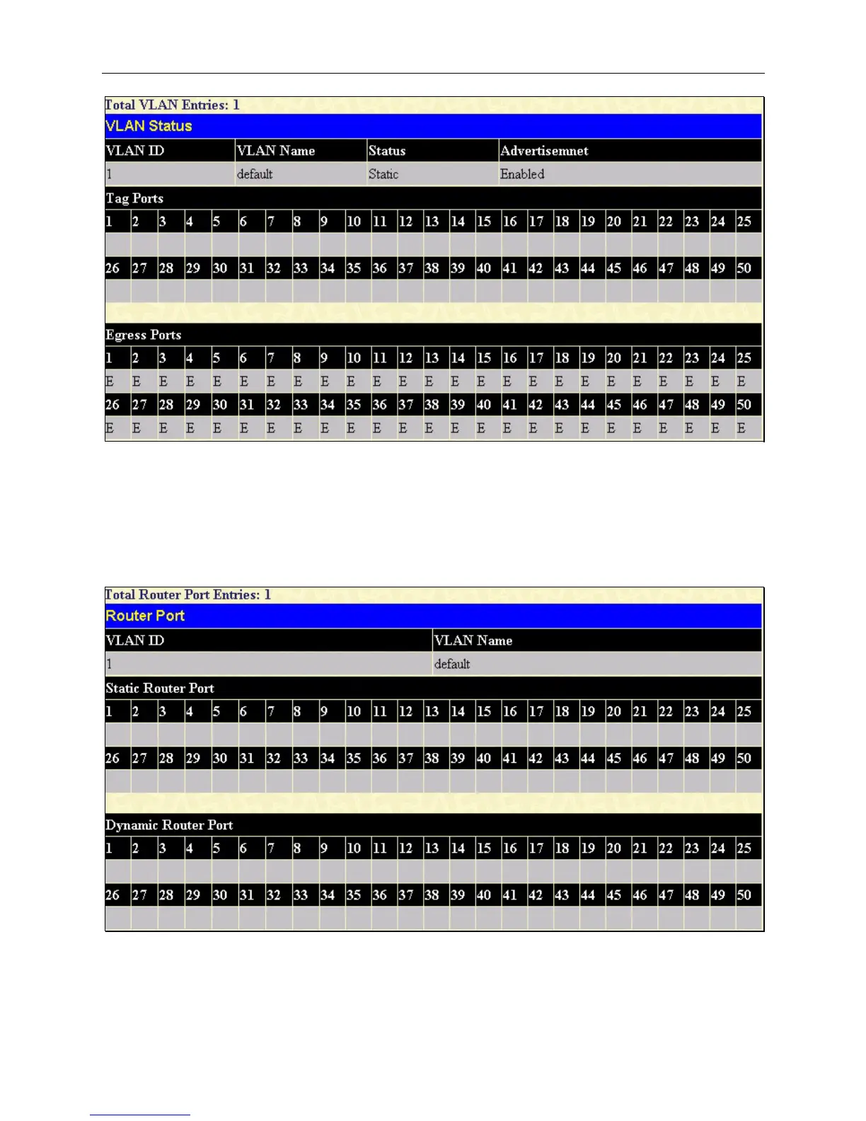 This displays which of the Switch's ports are currently configured as router ports. A router port configured by a user (using