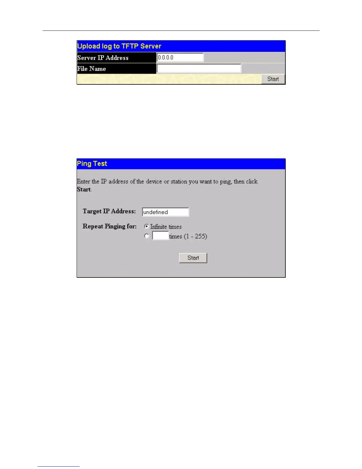 number of times to ping the Target IP Address by clicking its radio button and entering a number between 1 and 255.