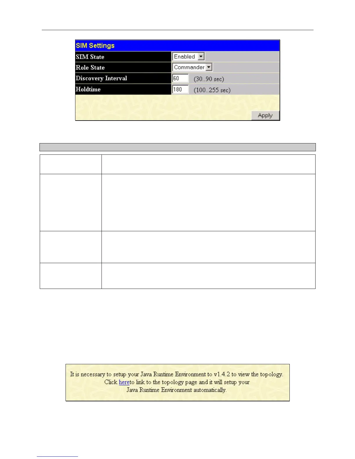 The Topology window will be used to configure and manage the Switch within the SIM group and requires Java script to