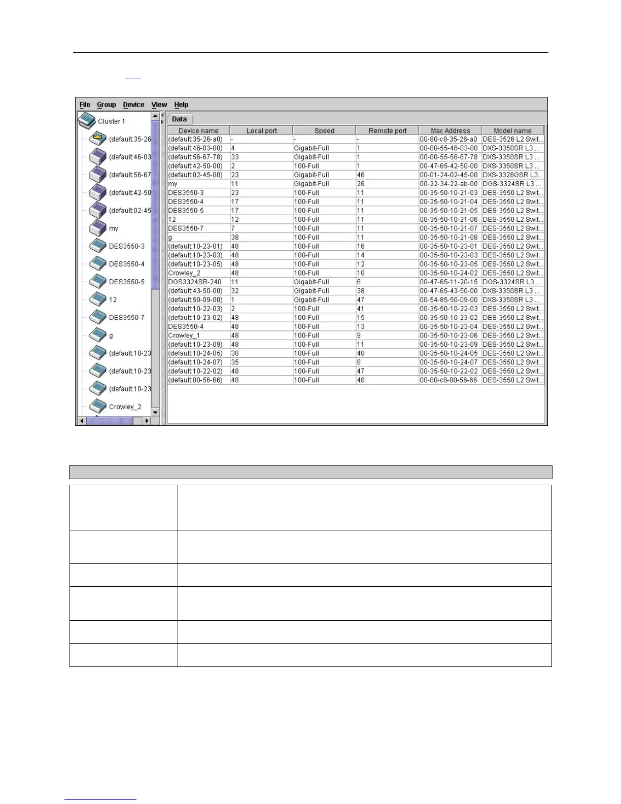 Displays the MAC Address of the corresponding Switch.
