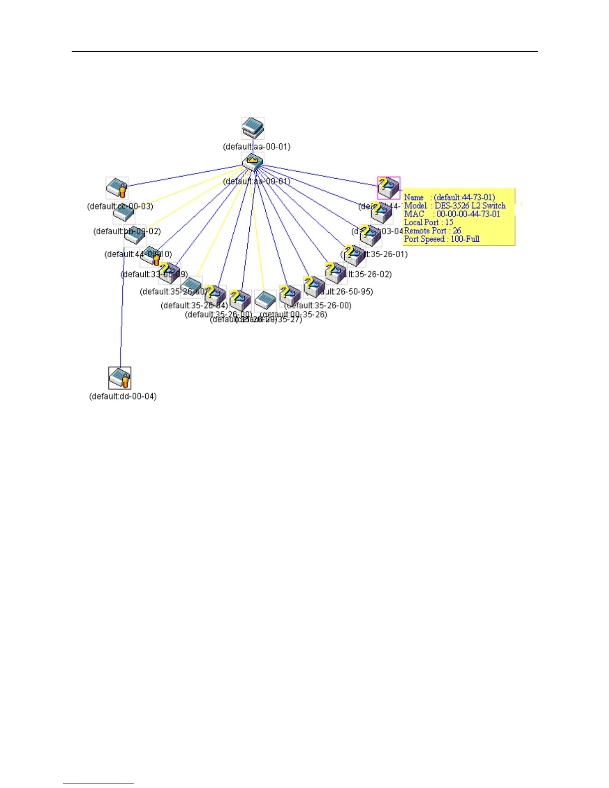 Setting the mouse cursor over a line between two devices will display the connection speed between the two devices, as