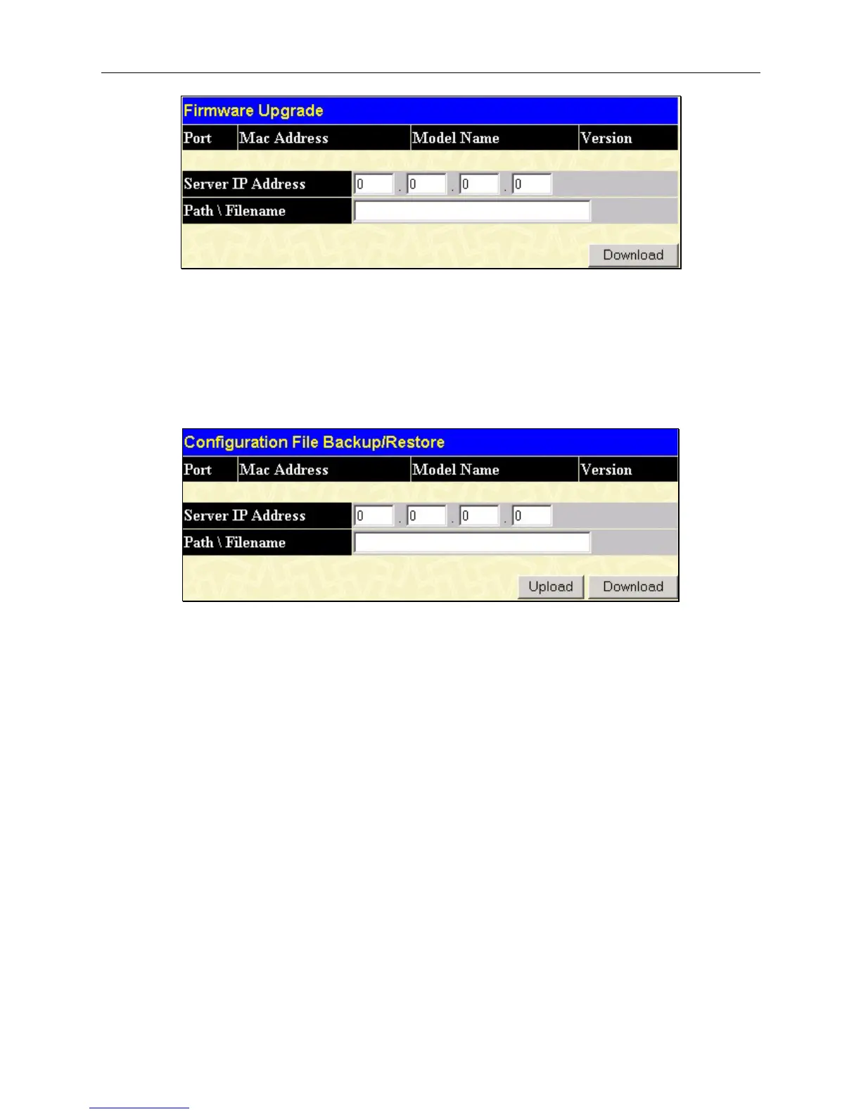 under the Port heading. To update the configuration file, enter the Server IP Address where the firmware resides and