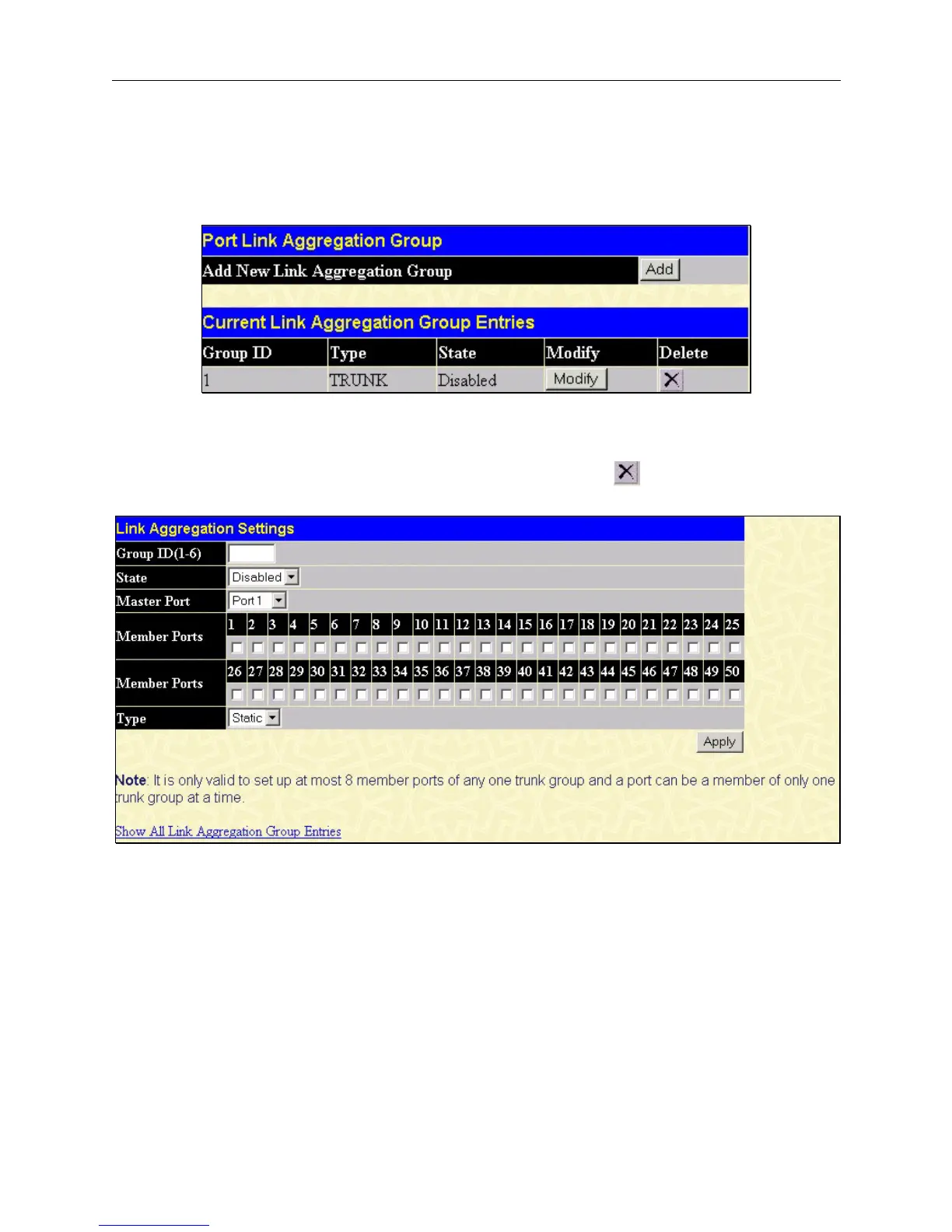 the entry you wish to alter. To delete a port trunk group, click the corresponding