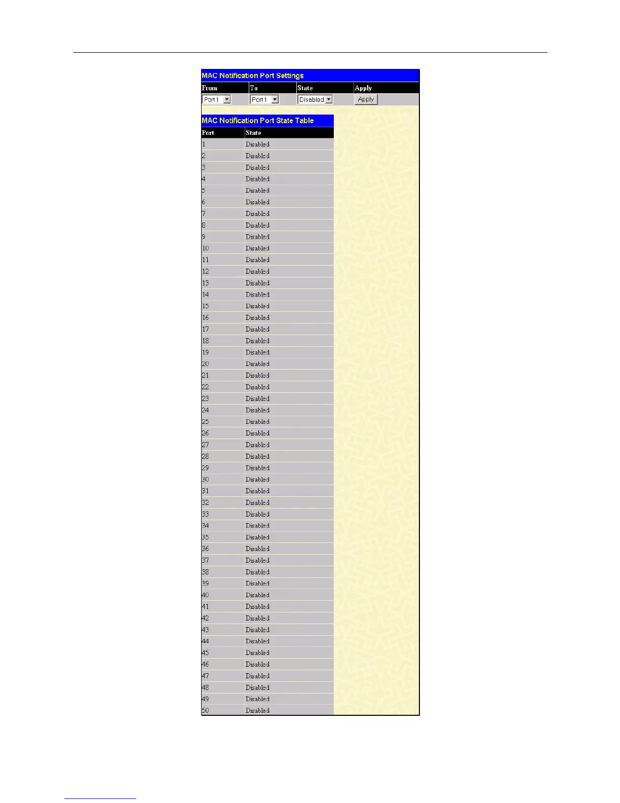 Figure 6- 13. MAC Notification Port Settings and Port State Table
