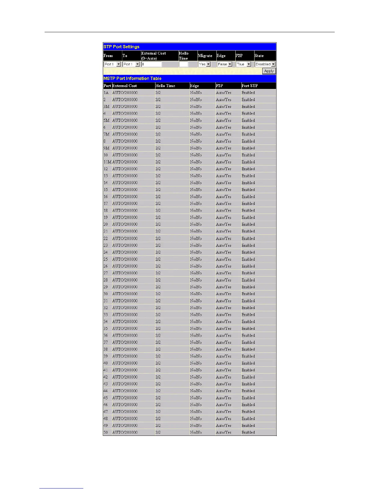 Figure 6- 28. STP Port Settings and MSTP Port Information Table