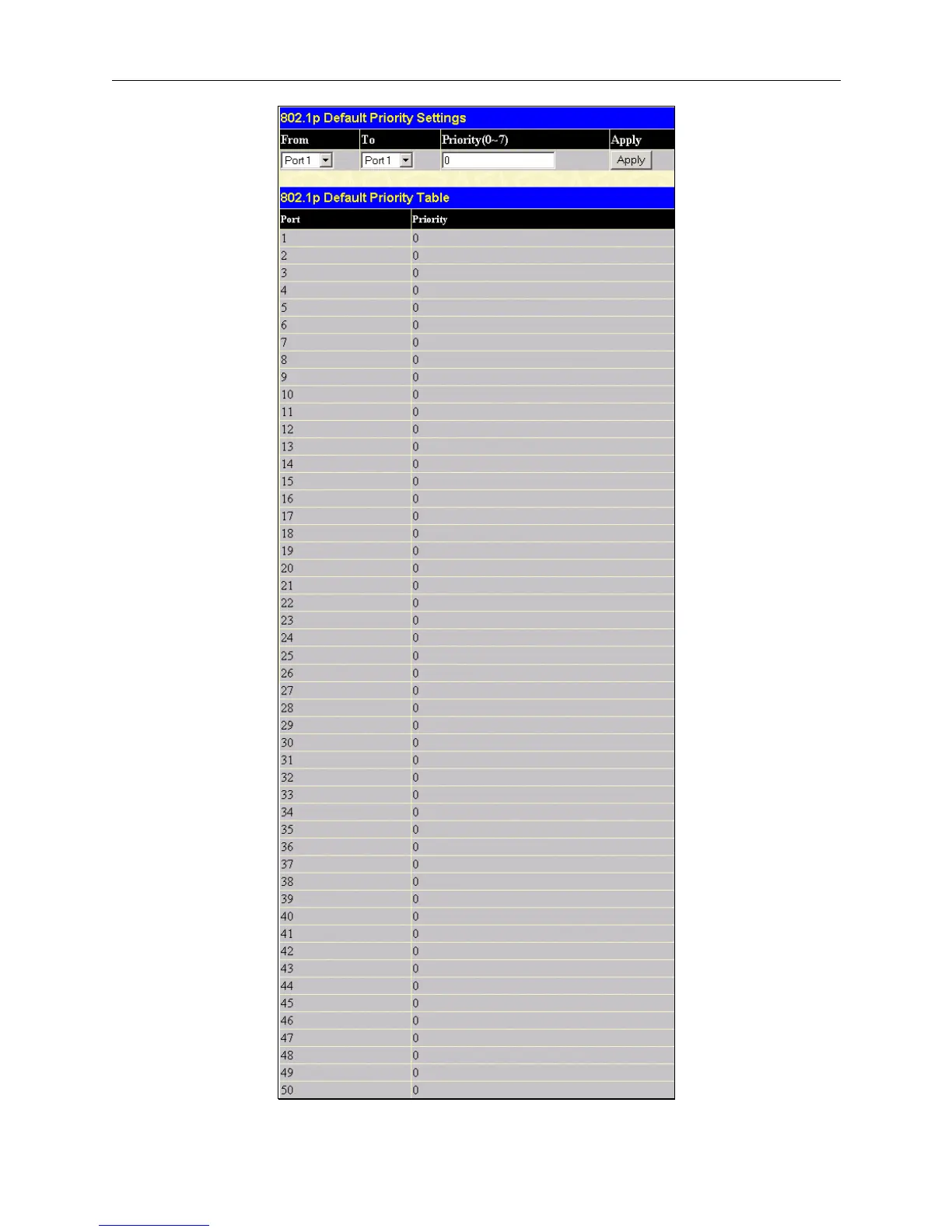 Figure 6- 45. 802.1p Default Priority window