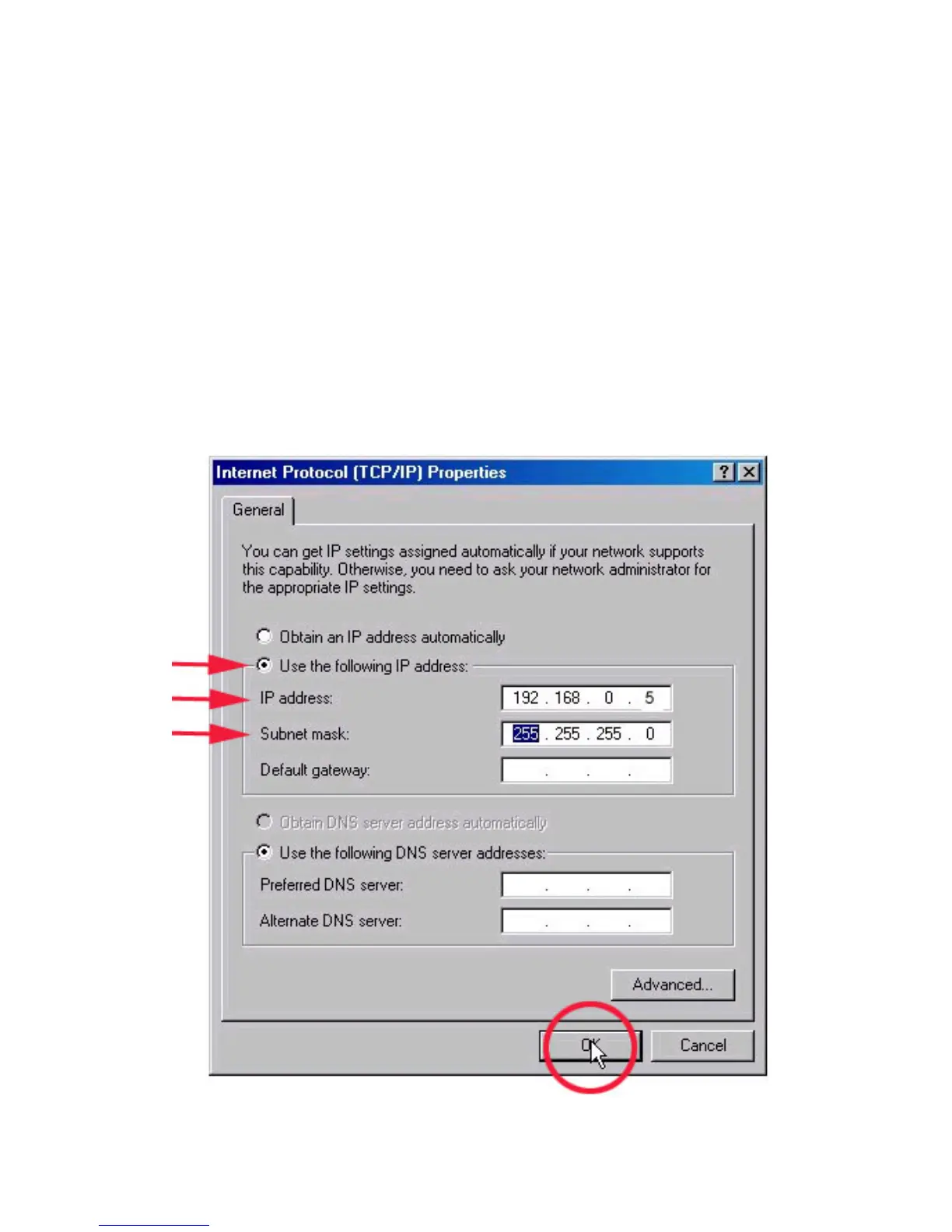255.255.255.0 and click OK. The IP address shown is an example. You can