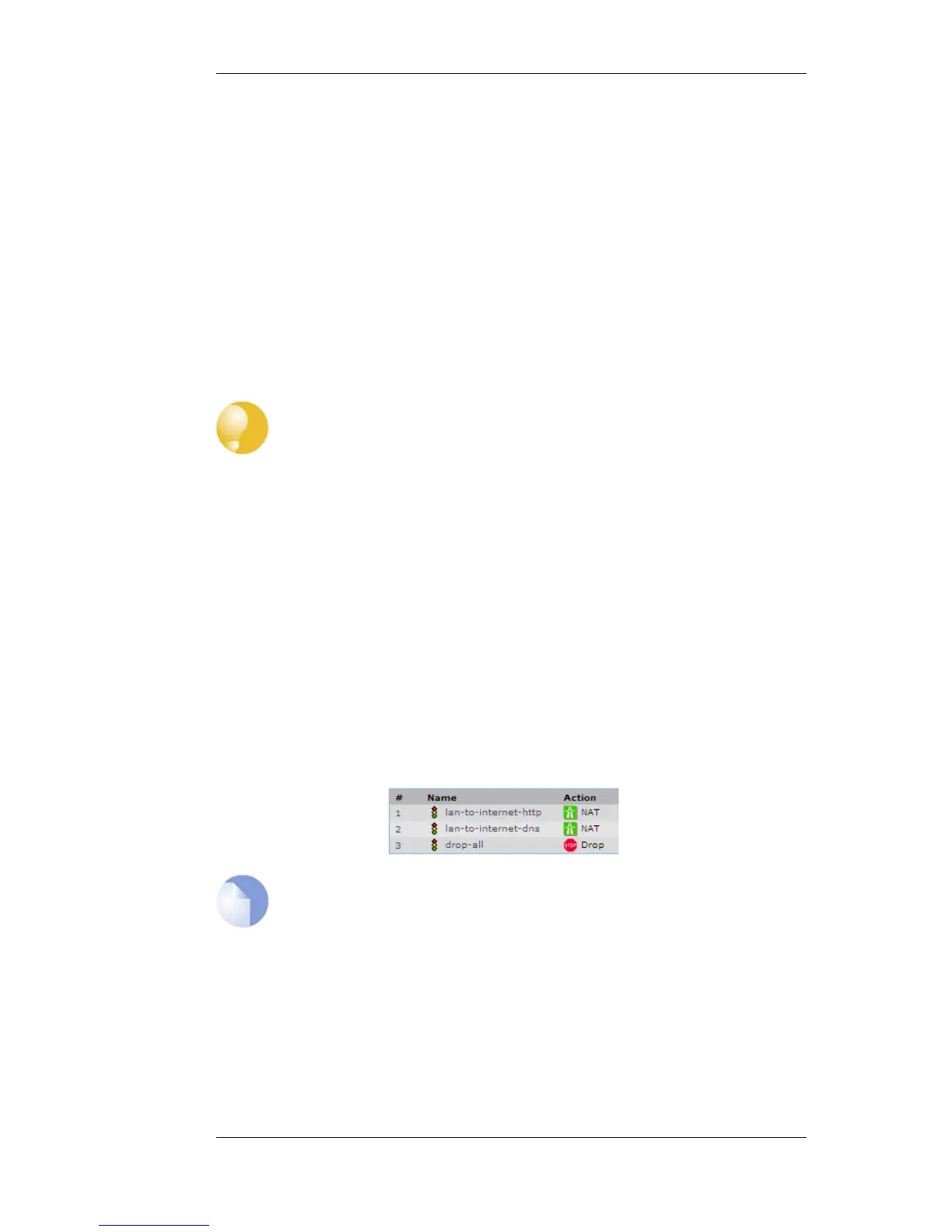 from an internal network and a third Drop-all rule to catch any other traffic so that it can be logged: