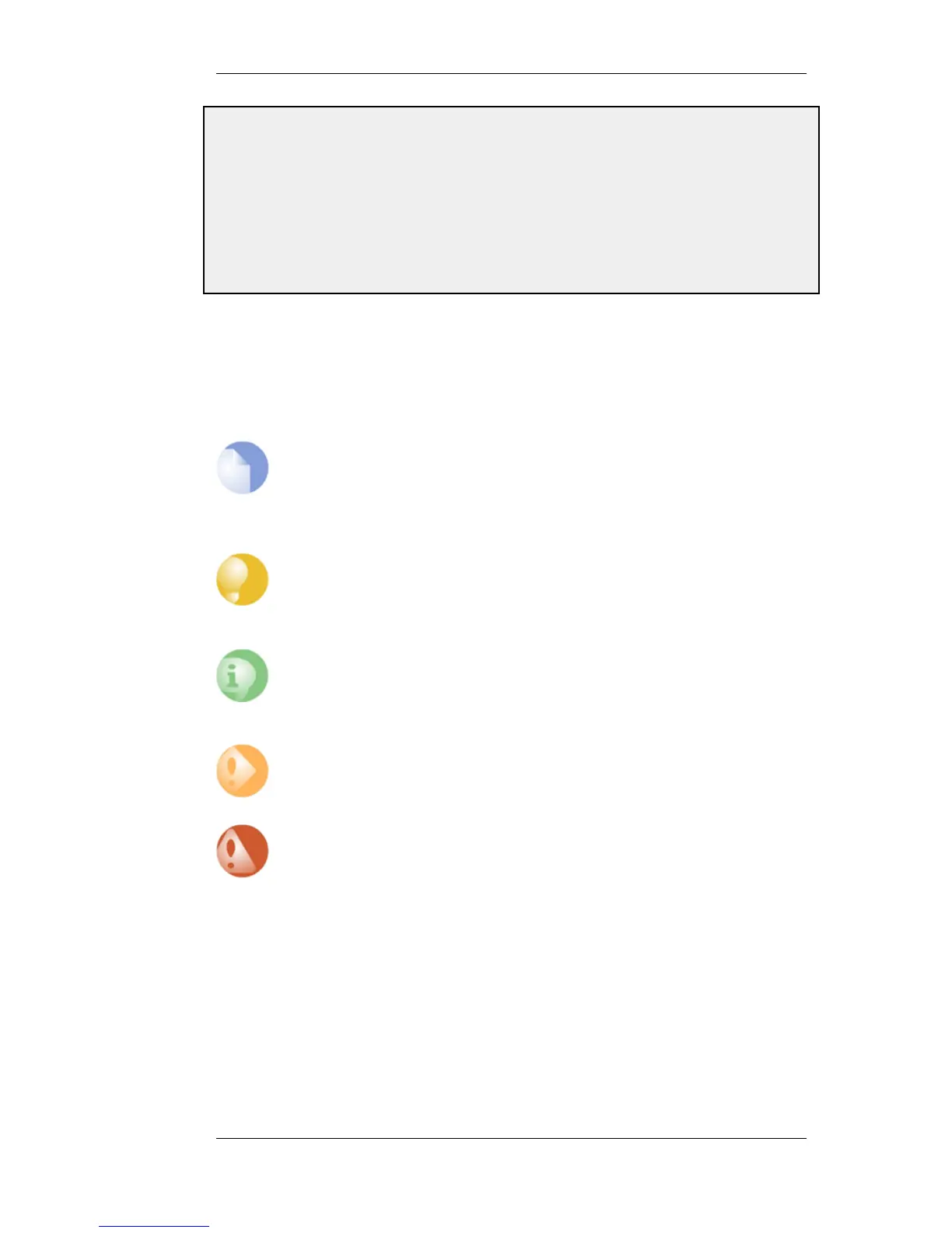 Sections of text which the reader should pay special attention to are indicated by icons on the left